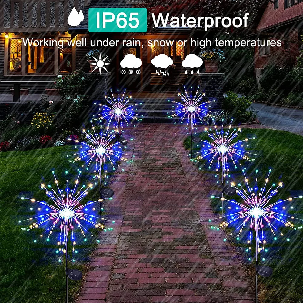 Solar garden lights firework are made of durable weatherproof and anti-rust materials .