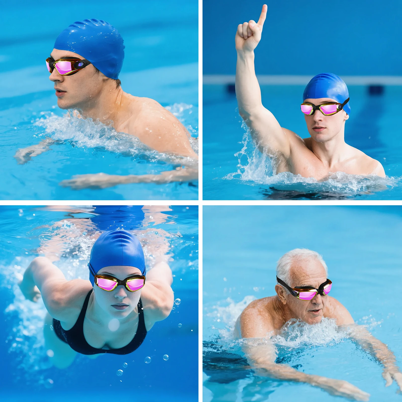NO FOG: Swimming goggles the lenses are coated with the newest advanced anti-fog, which can prevent fogging to the maximum extent, does not hurt the eyes, and can provide you with clear and long-distance vision when swimming.