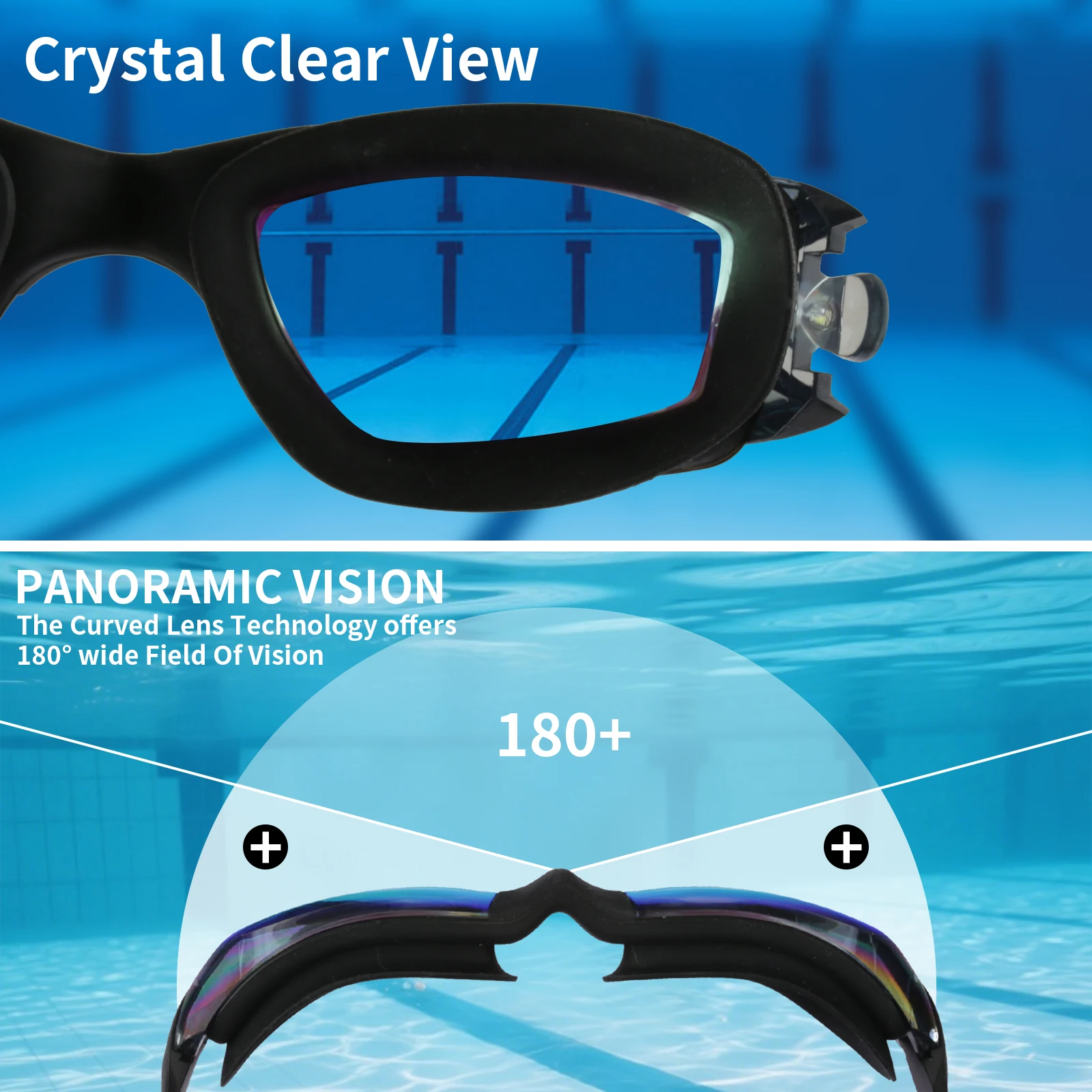 PANORAMIC & SUPER CLEAR VIEW-A wide 180-degree view gives you a clear and long-range view of swimming underwater. With the multi-coating protective lenses, you get no vertigo or glare experience during outdoor swimming time.