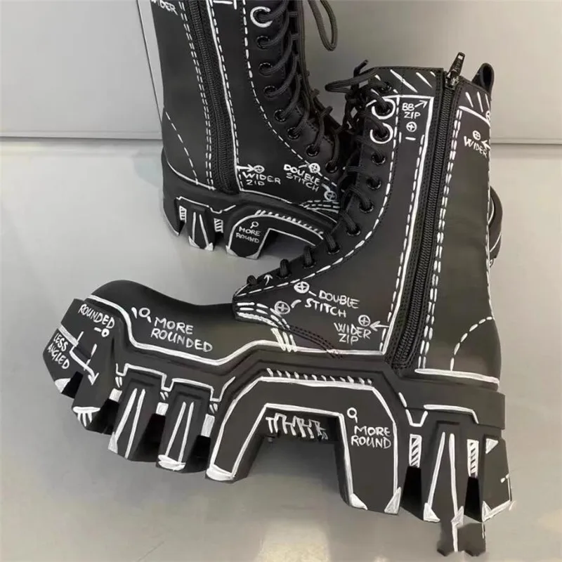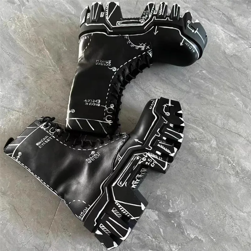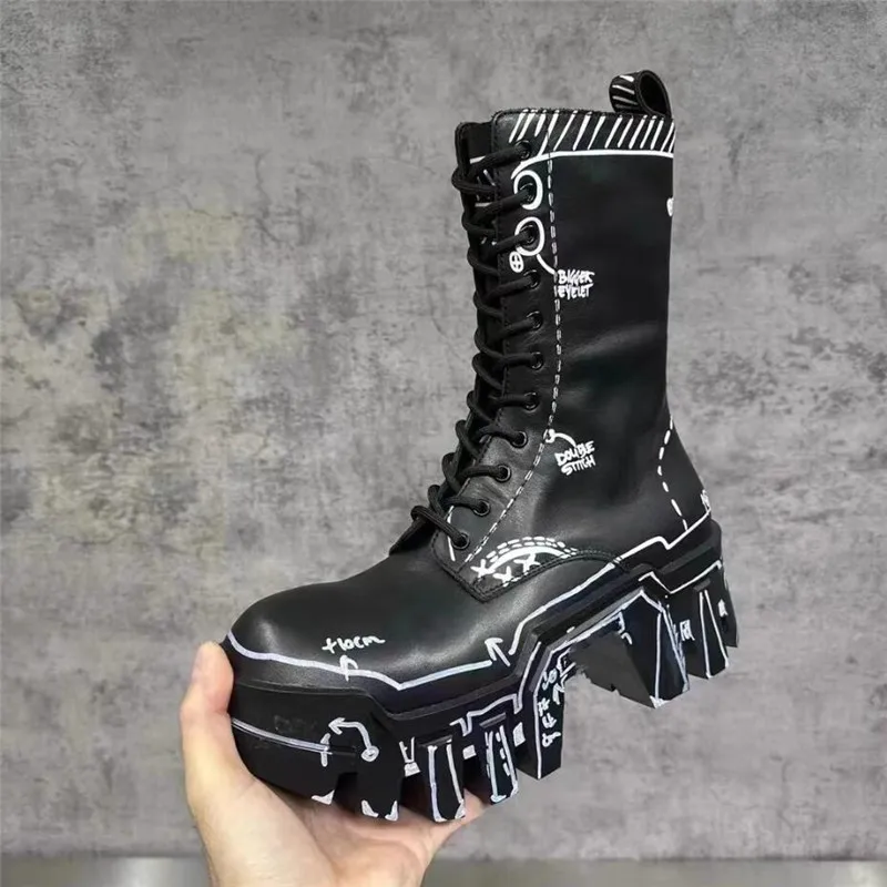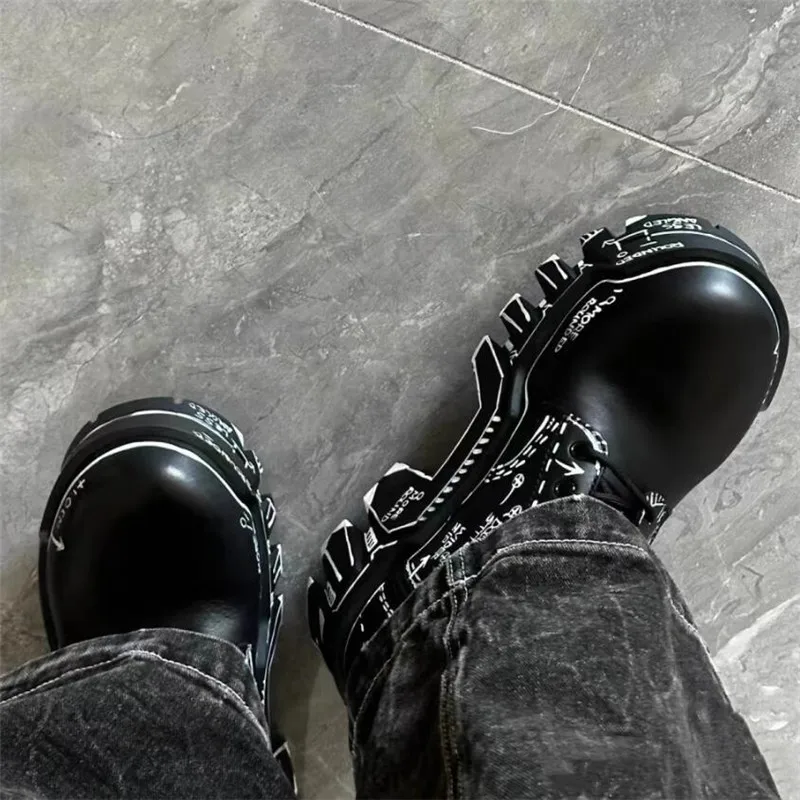 Thick Bottom Man High Top Boot Fashion Men Lace Up Black Boots