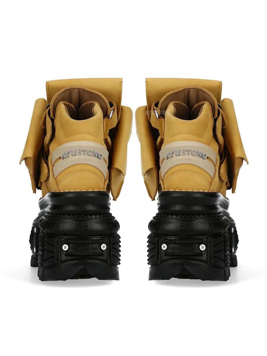 Thick Sole Lace Up Short Boots Autumn New Round Toe Punk Street Rock Sports Casual Shoes Black Fashion Women's Ankle Boots