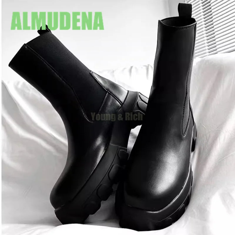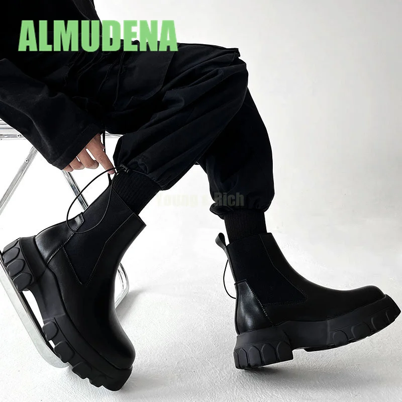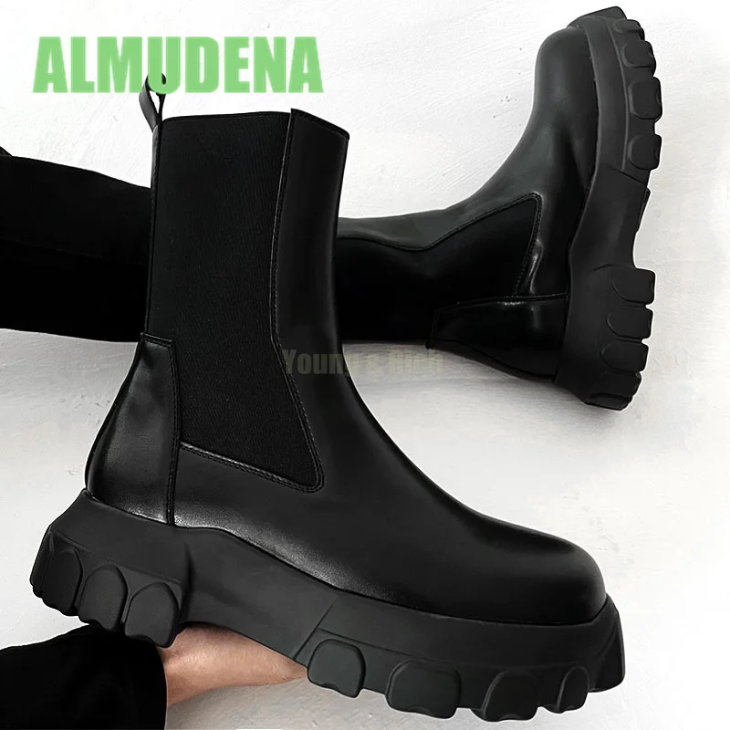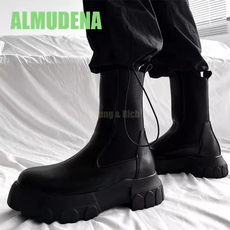 Thick Soled Chelsea Boots Men's Trendy High Top Boots Retro Handsome Motorcycle Boots Versatile Ankle Boots and Short Boots