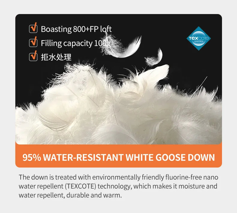 Filling Material: 95% water-resistant white goose down (100g filling)