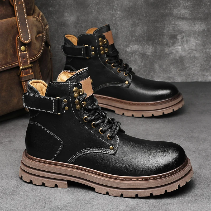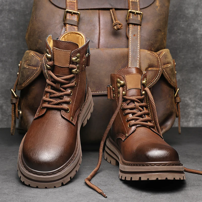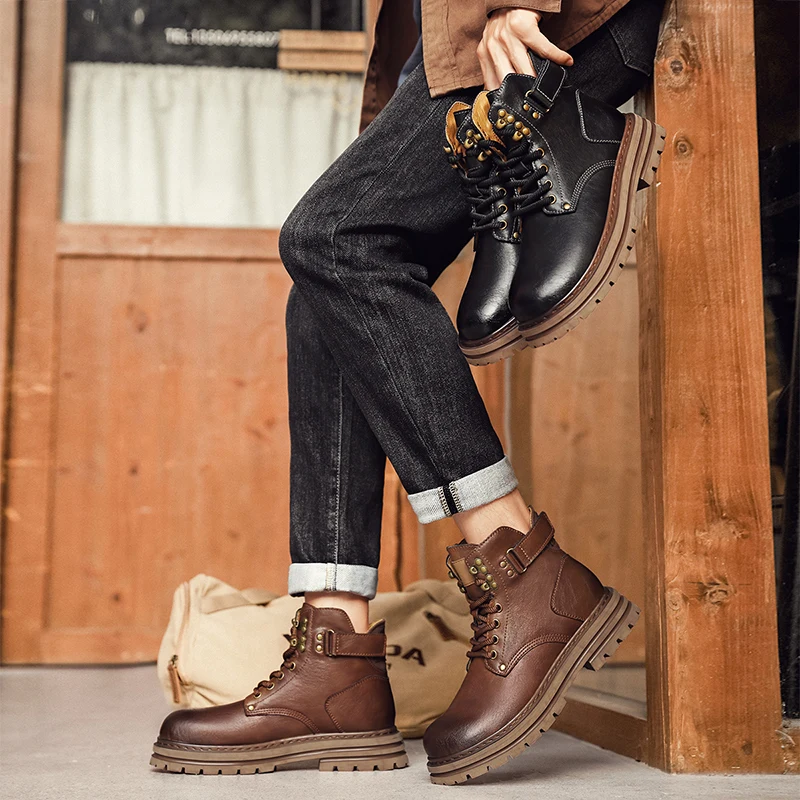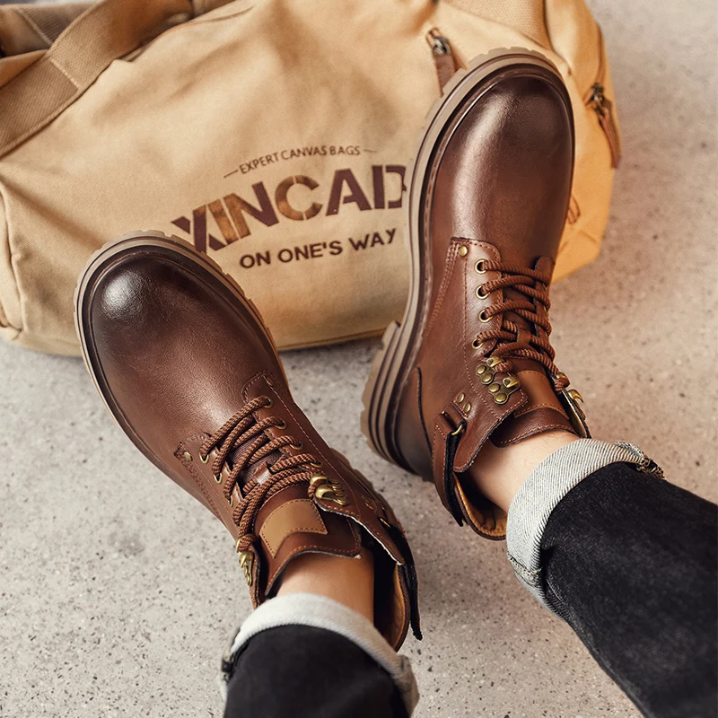 Top Quality Vintage Leather Men's Snow Boots Fashion Genuine Leather Man Ankle Boots Lace Up Outdoor Motorcycle Boots Walk Shoes