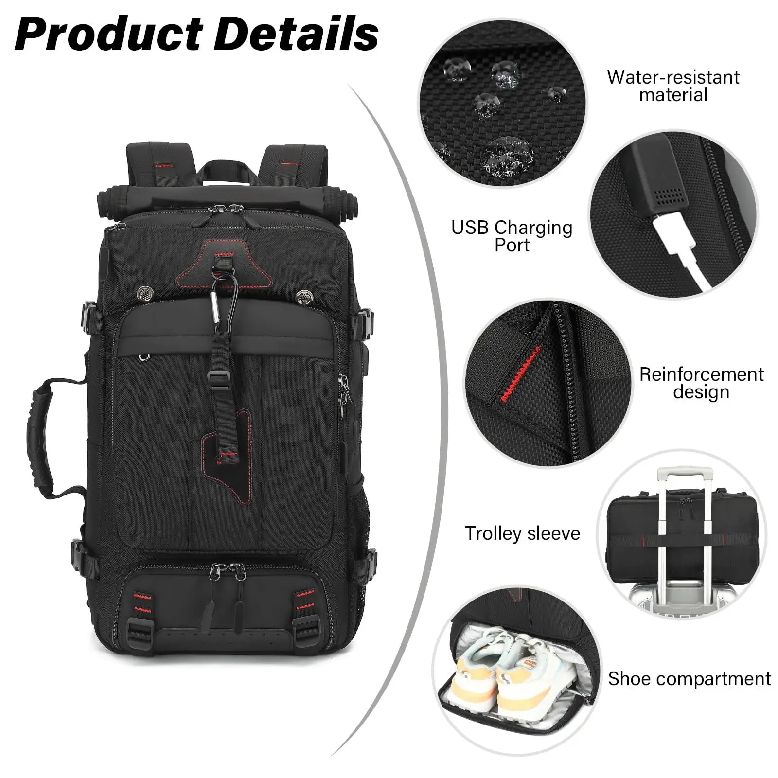 Travel Backpack Large Carry on Backpack Durable Convertible Duffle Bag Fit for 17 Inch Laptop with Shoe Compartment Wet Pocket