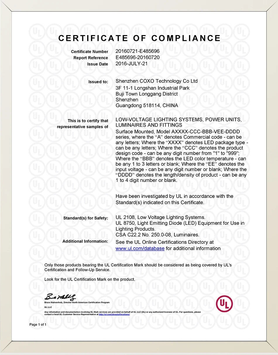 UL CERTIFICATE OF COMPLIANCE