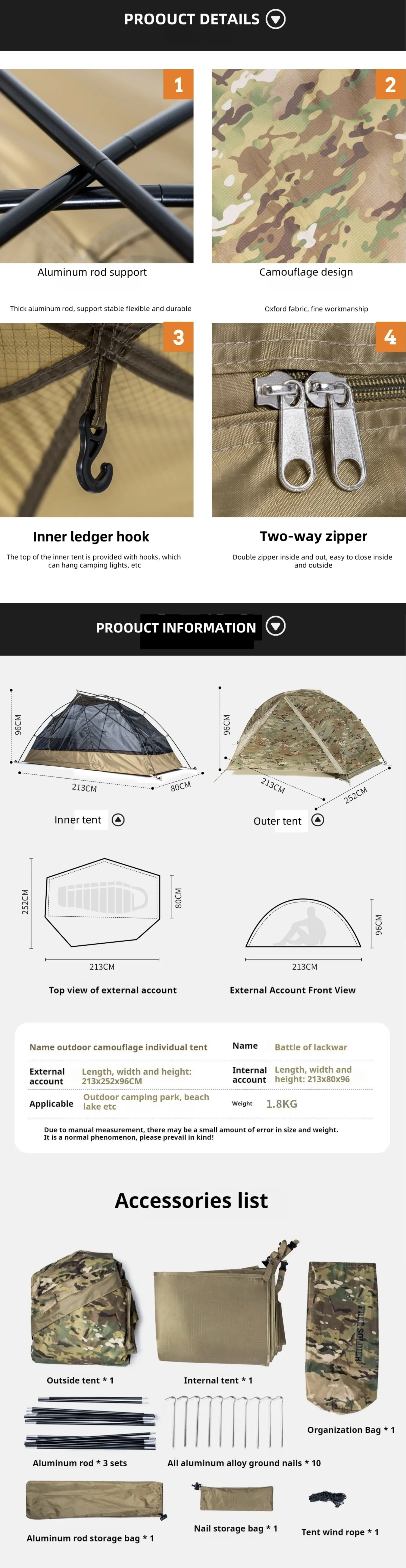 Ultra-Lightweight 1.8KG Military Tent Waterproof Windproof Quick Setup Backpack Tent for Camping Hiking Beach Backpacking