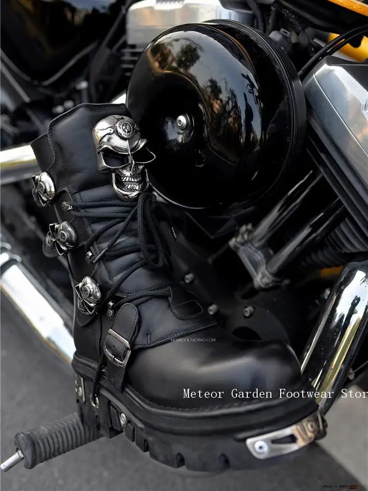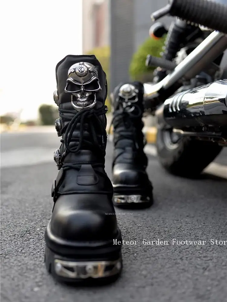 Unisex Handmade Custom Skull High Boots Metal Decorated Motorcycle Punk Thick-Soled Couple Shoes New for Men and Women