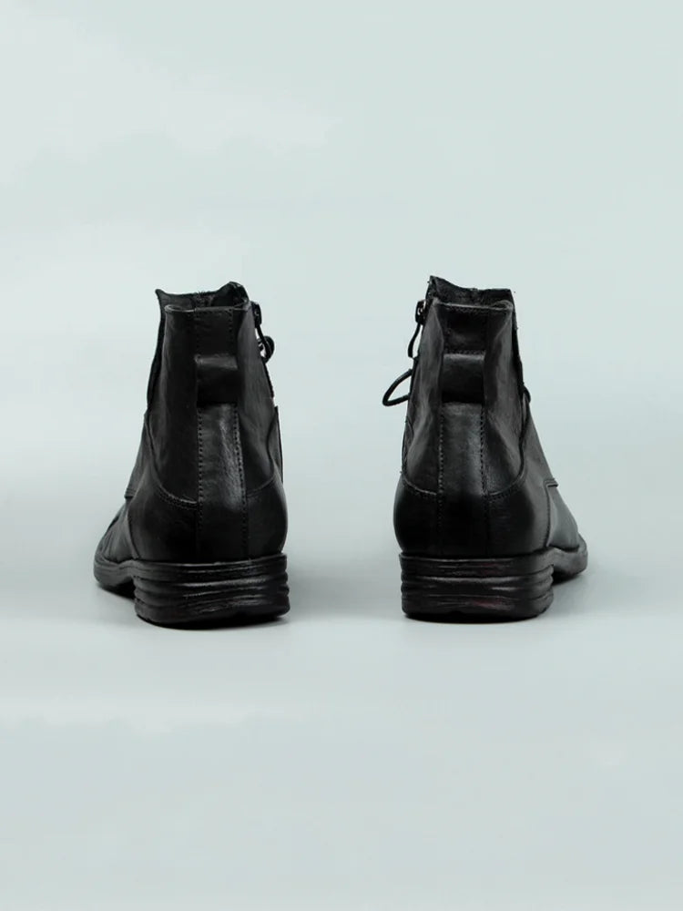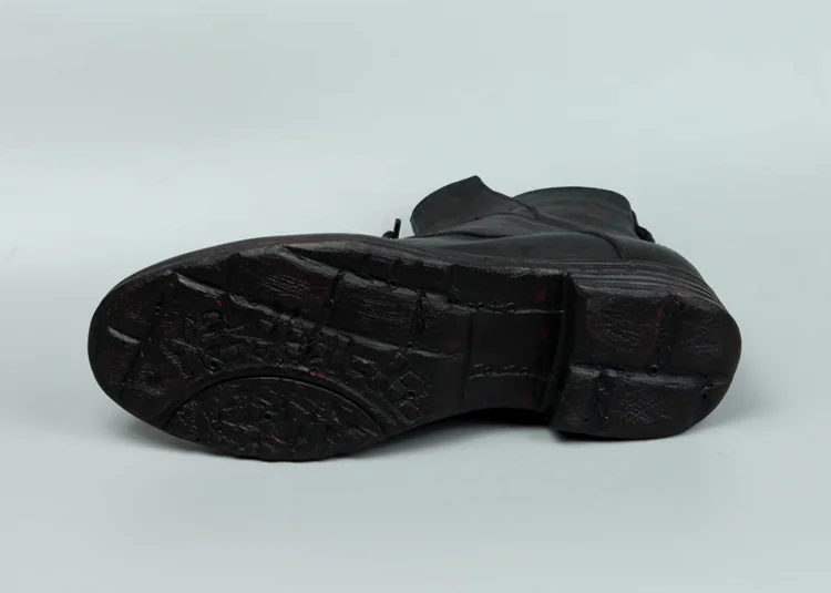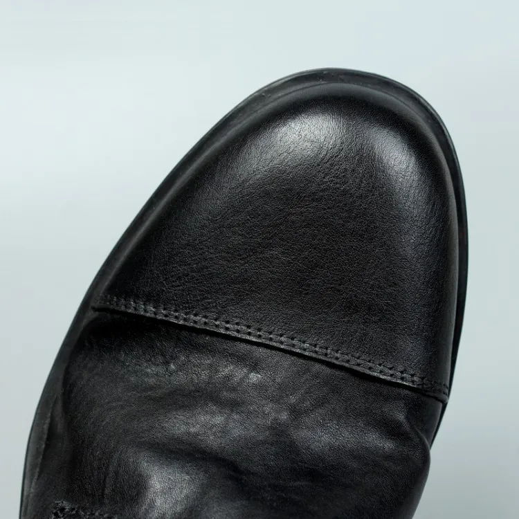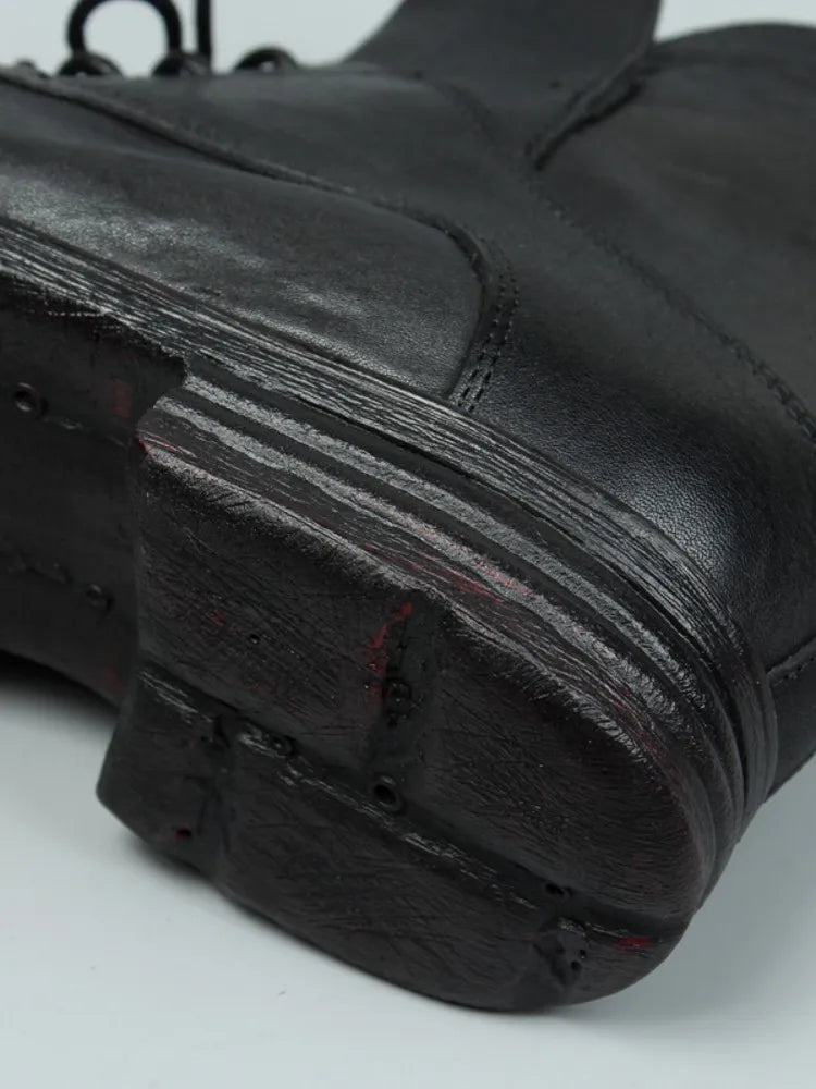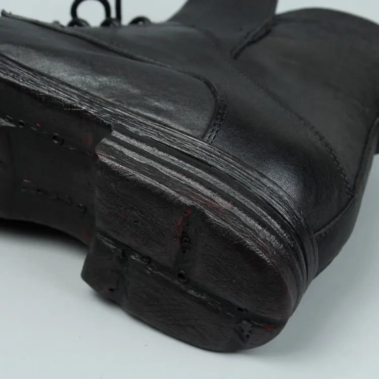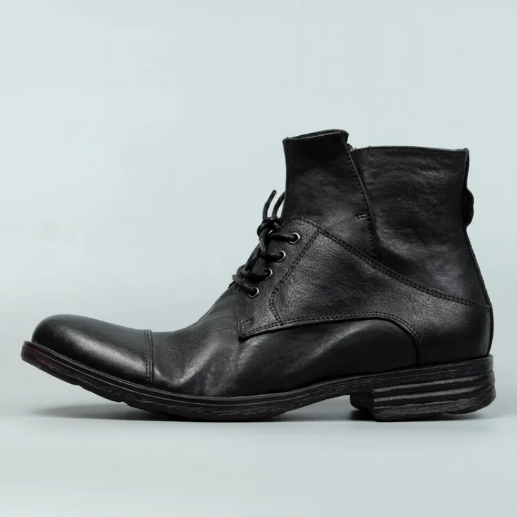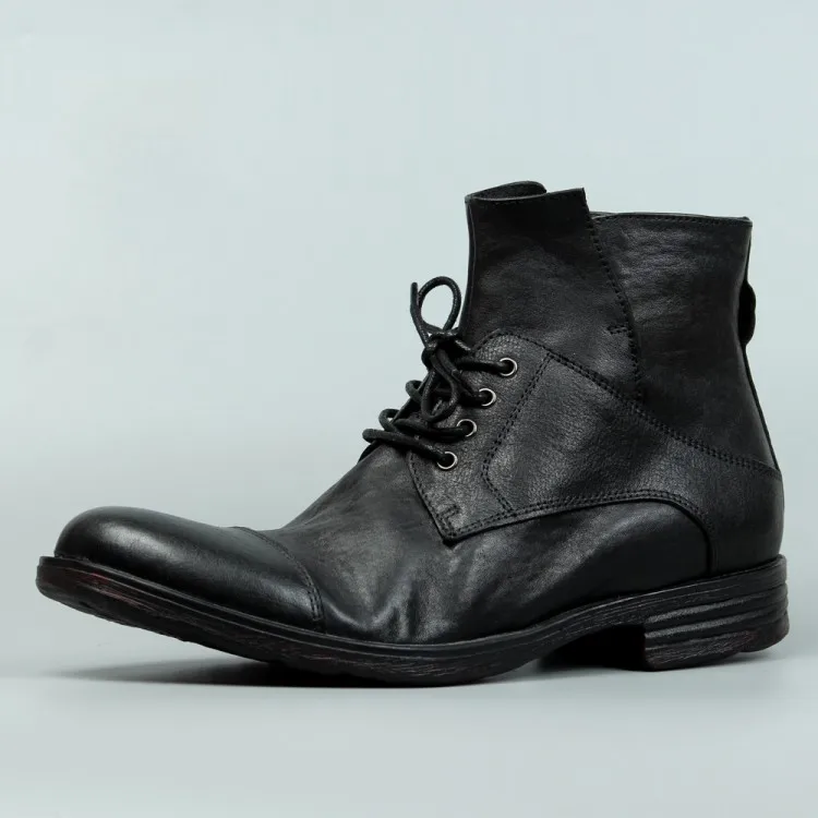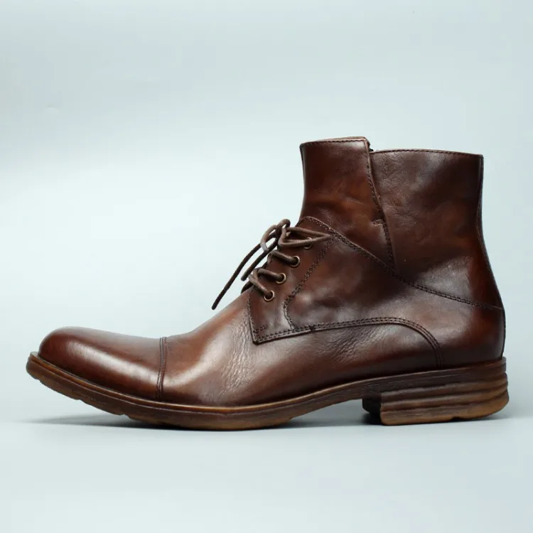 Vintage Mens Cowhide Genuine Leather Riding Ankle Boots Lace Up High Top Work Shoes Vintage Round Toe Autumn Moto Biker Boots