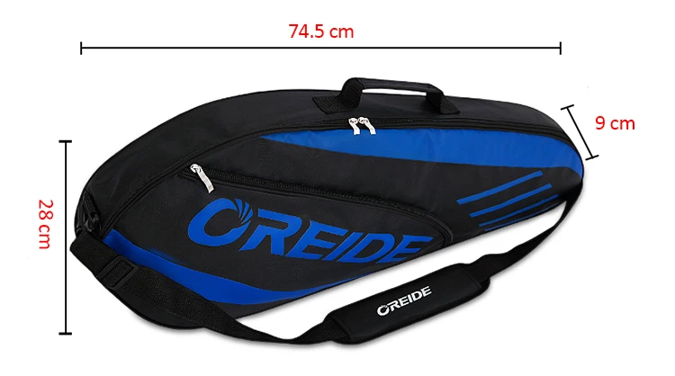 Waterproof bag, can hold 3-6 pcs rackets (3 pcs tennis rackets or 6 pcs badminton rackets).