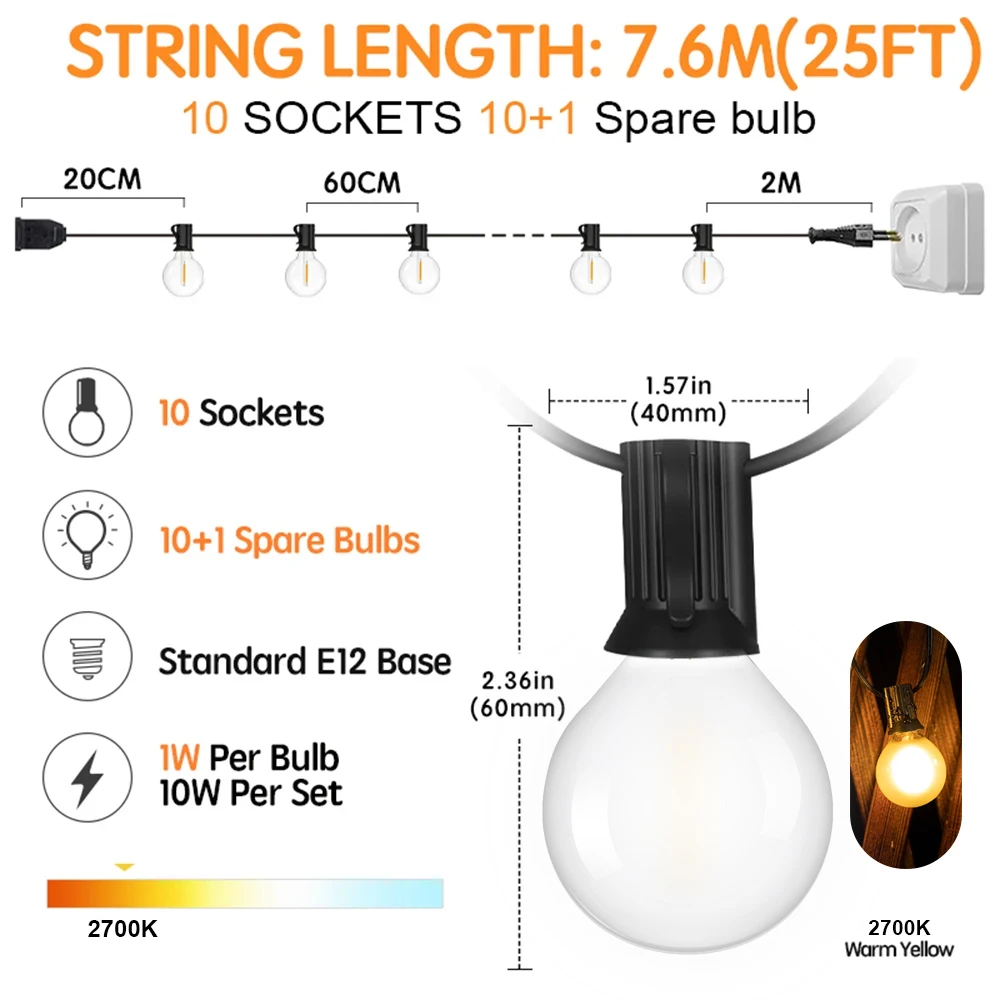 Waterproof G40 Led Lights Decoration EU 220V US 110V String Light Warm White Frosted White Wedding Party Garden Lights Outdoor
