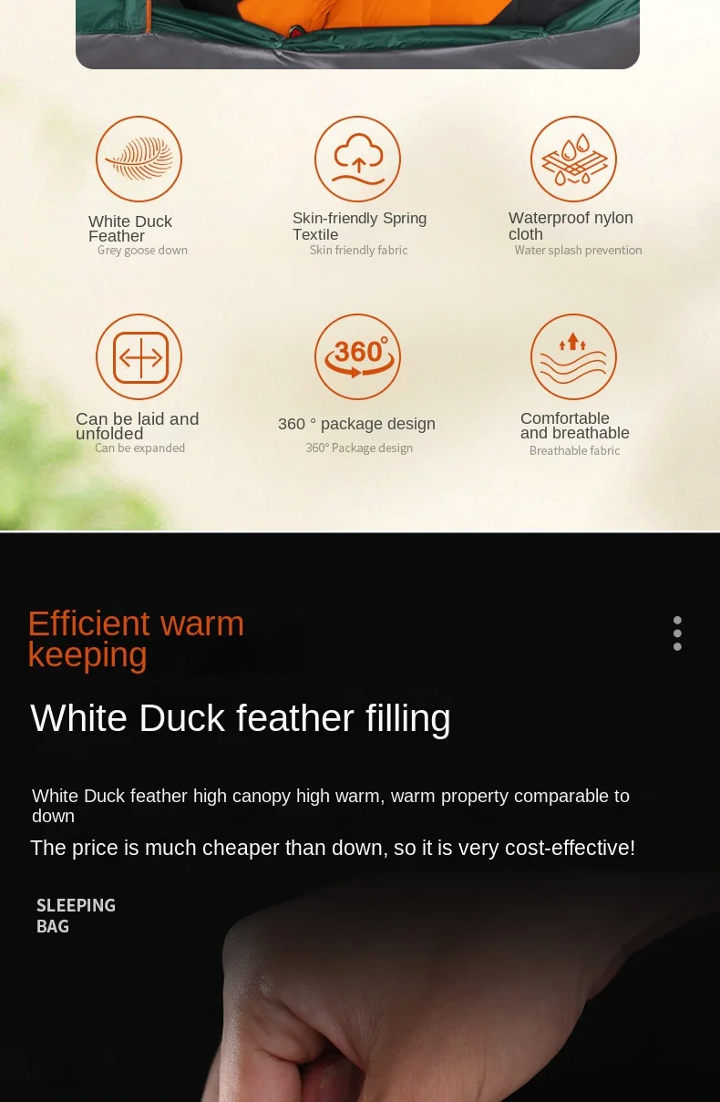 Wholesale Unisex Waterproof Nylon Sleeping Bag Envelope Style Duck Filling for Winter Keep Warm Adults Use Outdoor Camping Hike