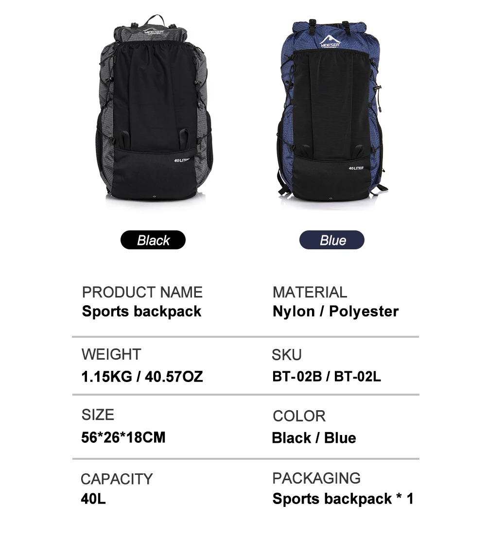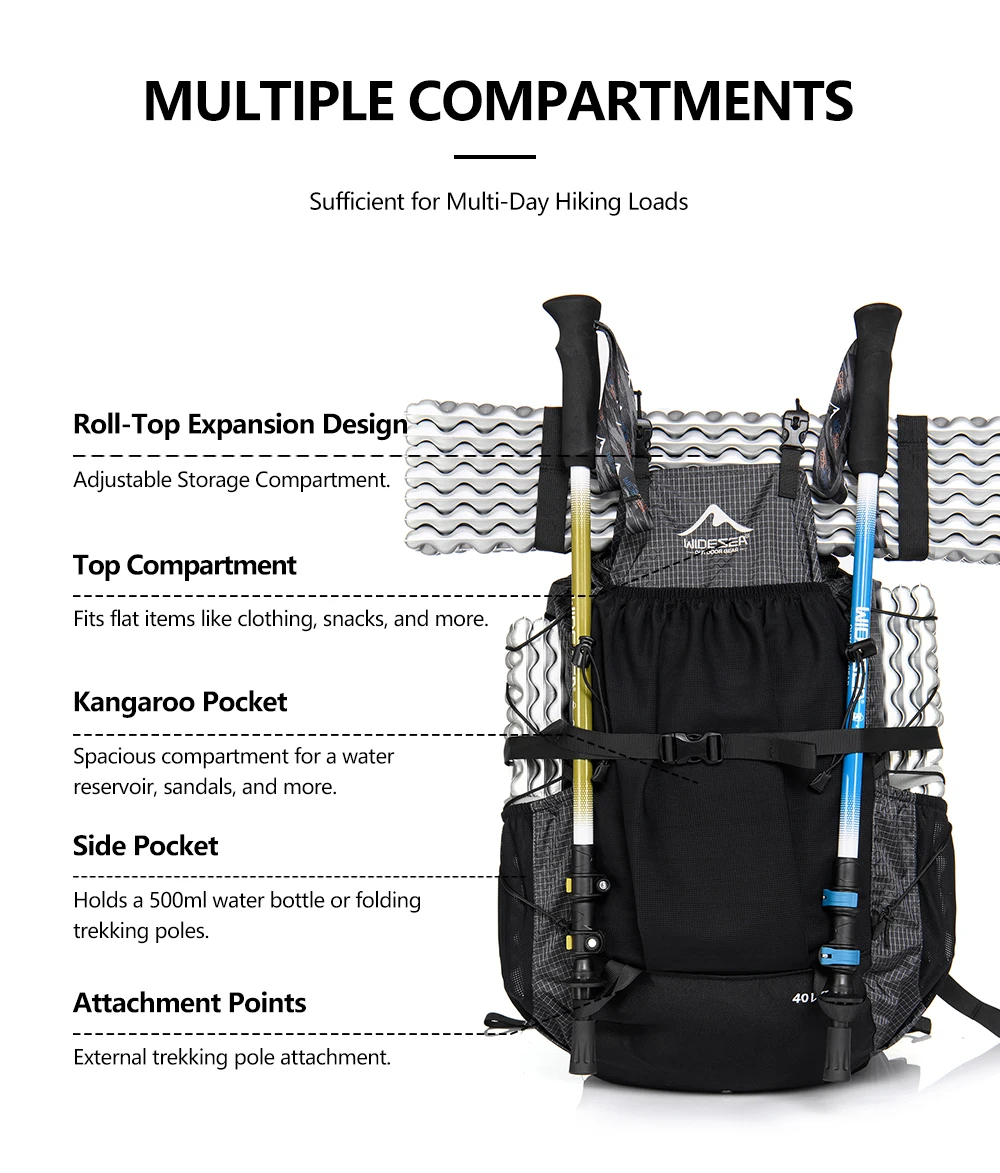 Widesea Camping Backpack 40L Hiking Bag Sports Men's Backpacks Ultralight Waterproof Trekking Travel Essentials Camping Supplies