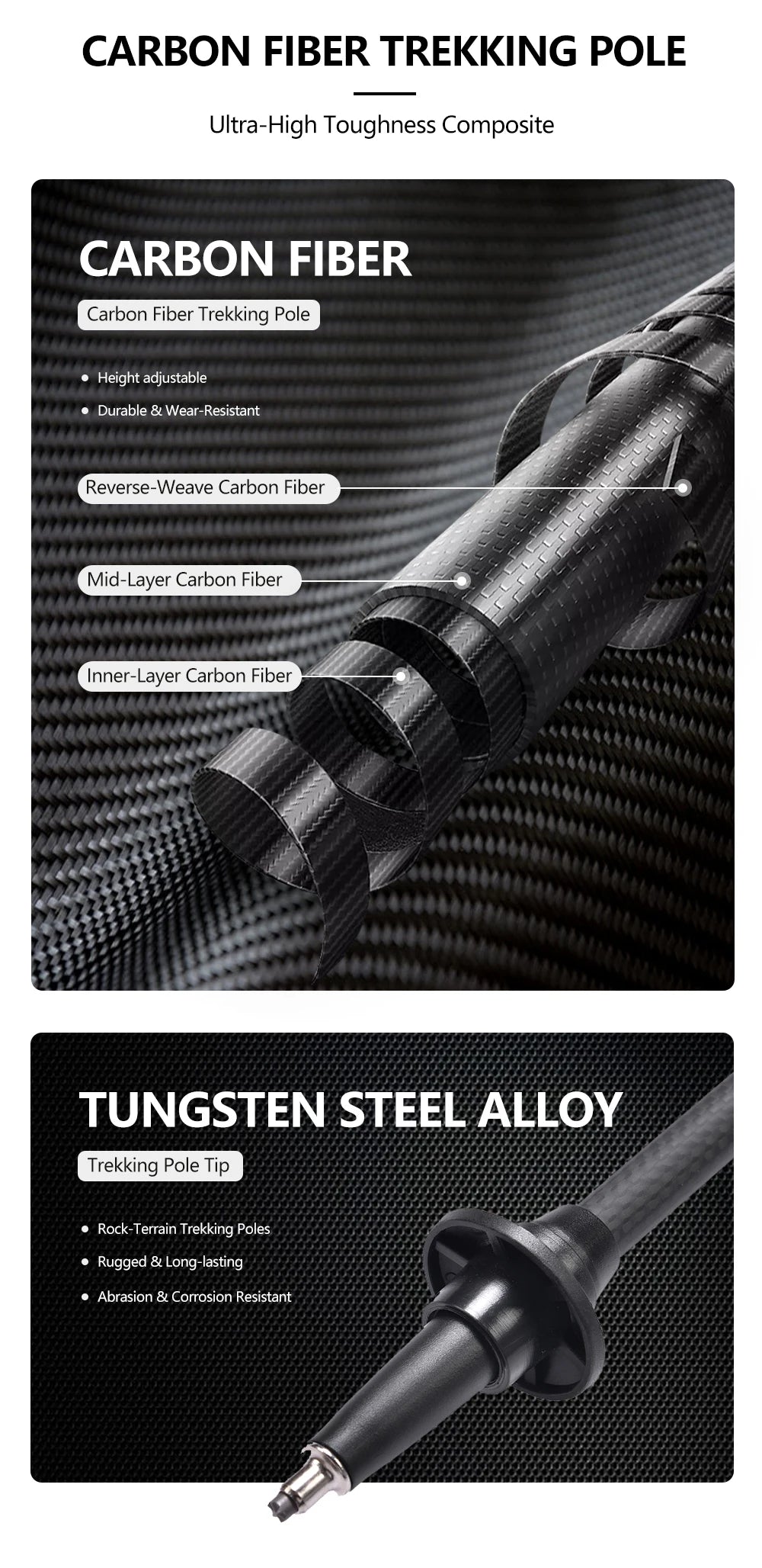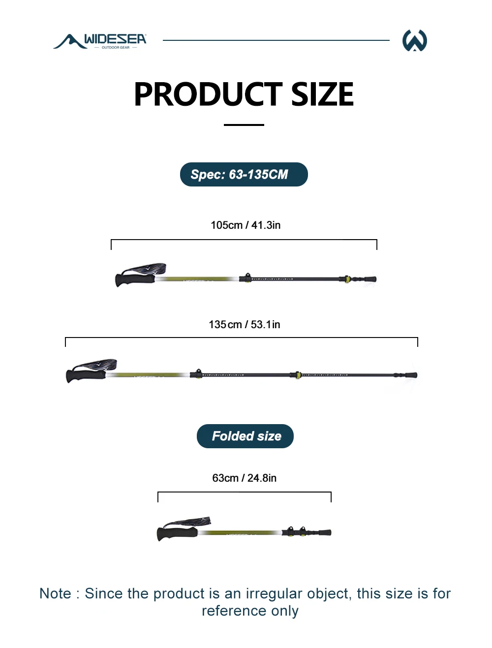 Widesea Trekking Poles 3section Telescopic Pole Carbon Installed Lock For Anti-slip Adjustment Portable Outdoor Walking Sticks
