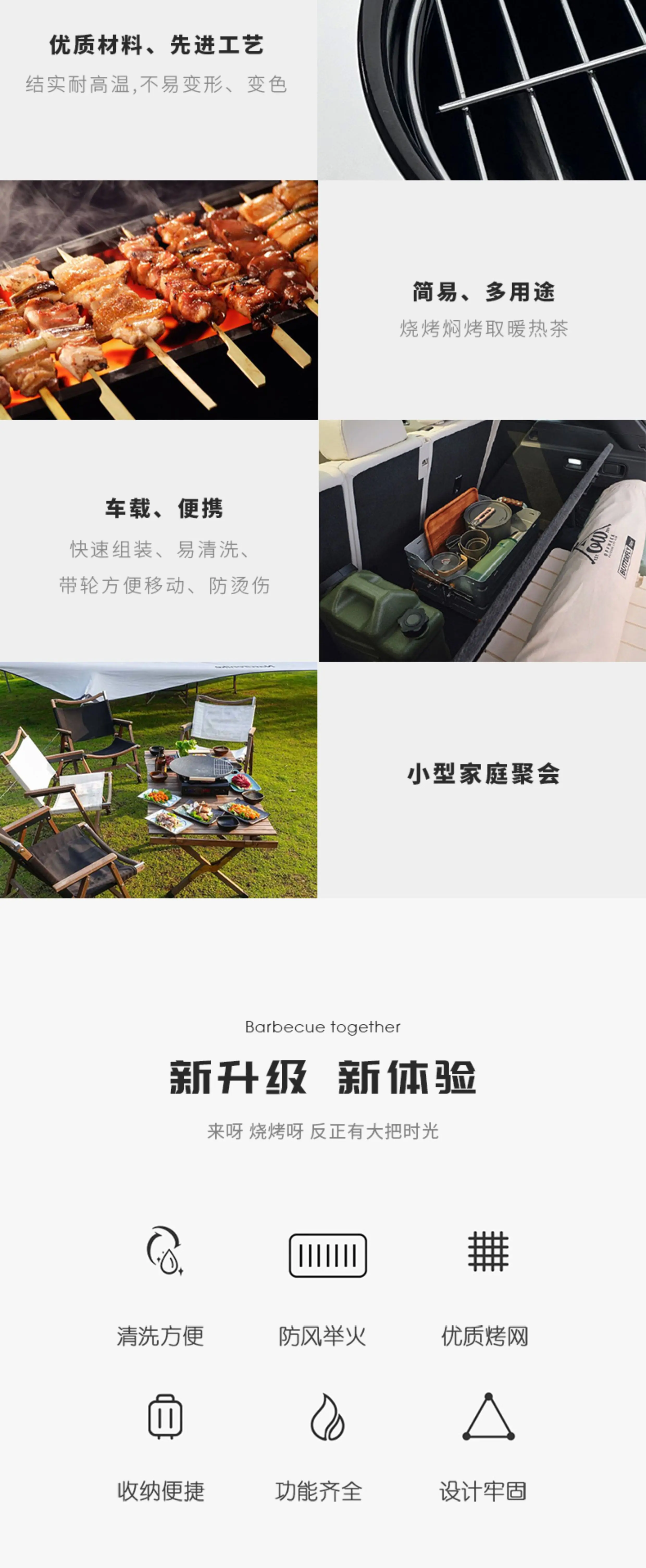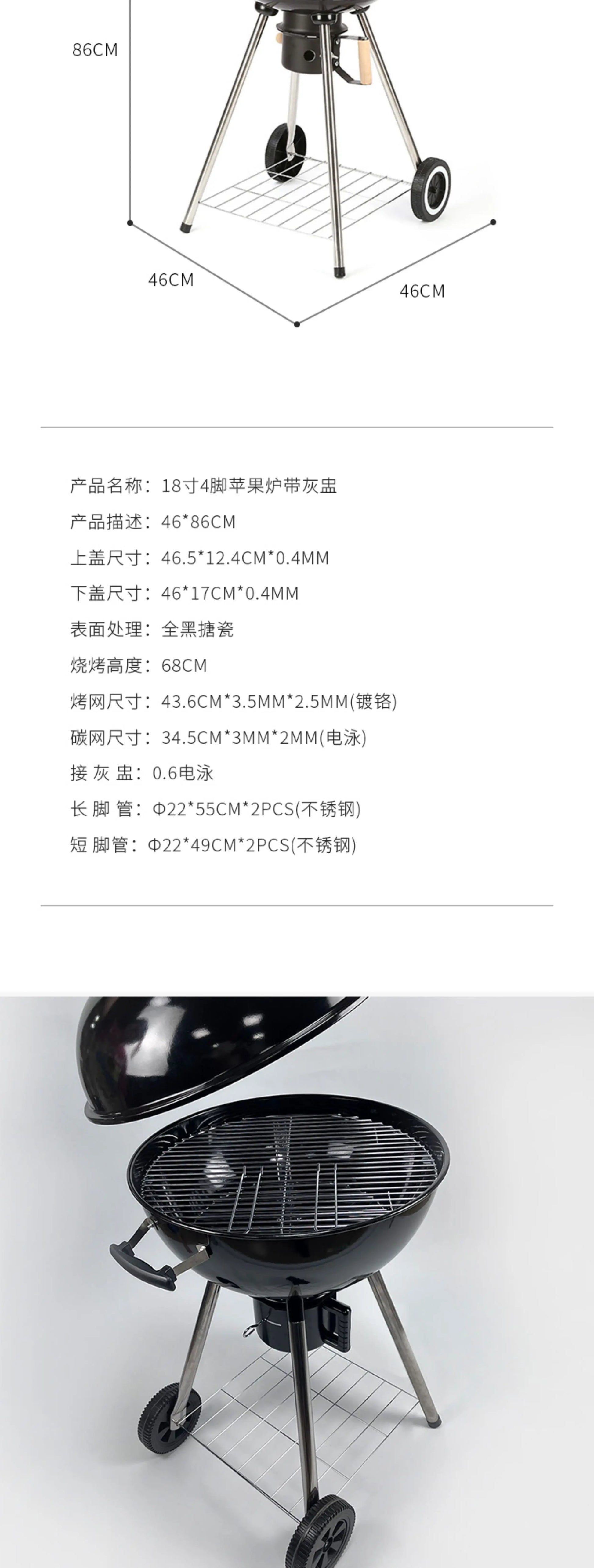 Windproof Outdoor BBQ Grill American Charcoal Apple Smoking Rack Movable Four-Legged Grill Detachable Camping BBQ Pan