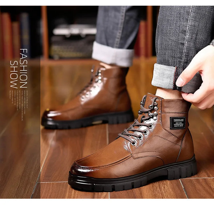 Winter Cotton Shoes Men Fashionable High-top Wear-resistant Shoes Thick-soled Plus Velvet Snow Boots Outdoor Non-slip Work Boots