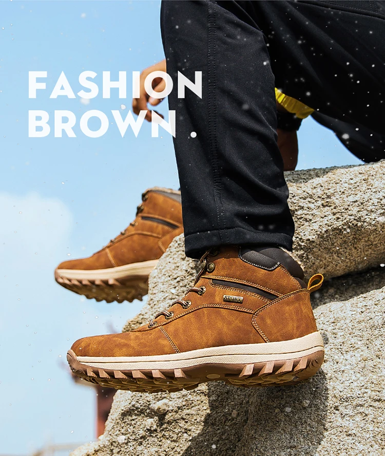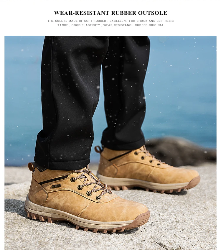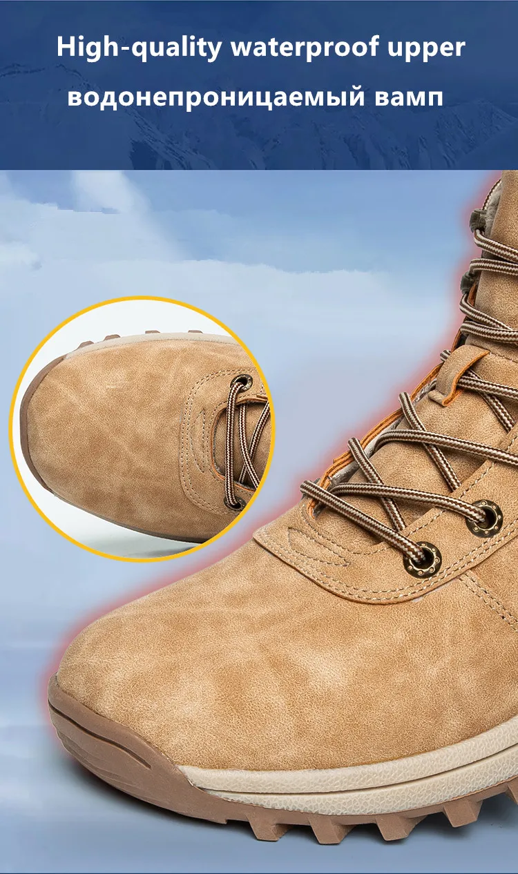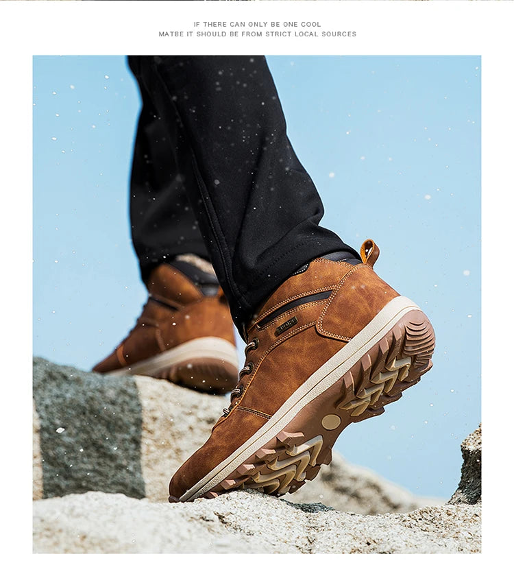 Winter Men Boots Waterproof Leather Plush Super Warm Snow Boots Men Sneakers Outdoor Hiking Boots Men Ankle Boots Big Size 38-48