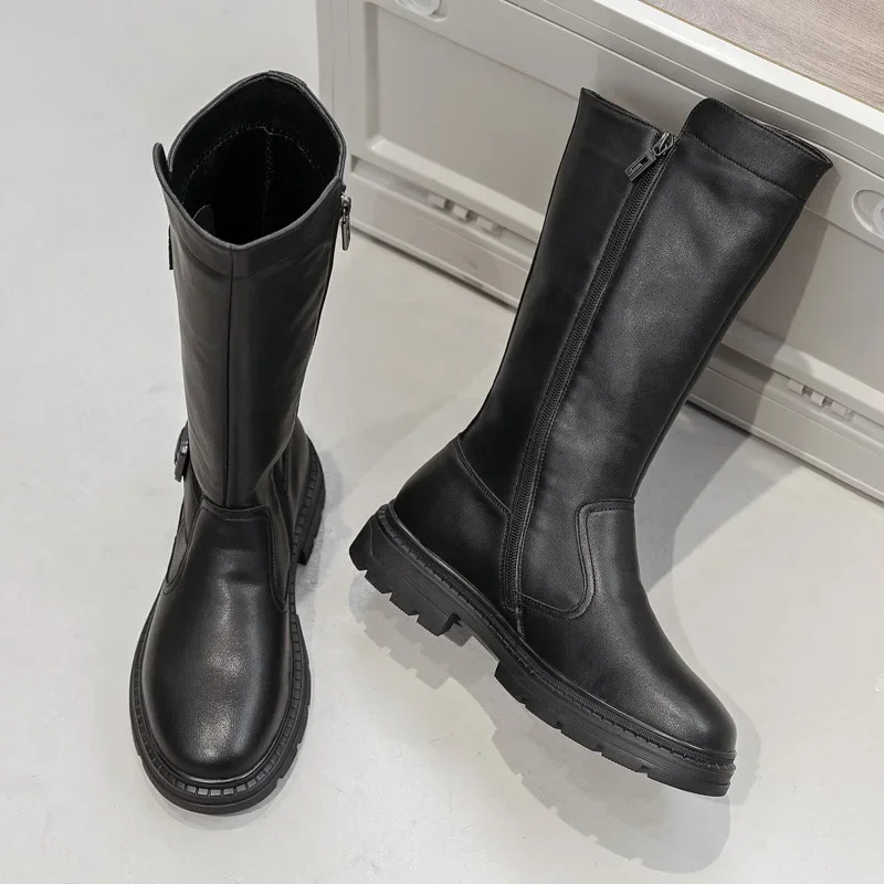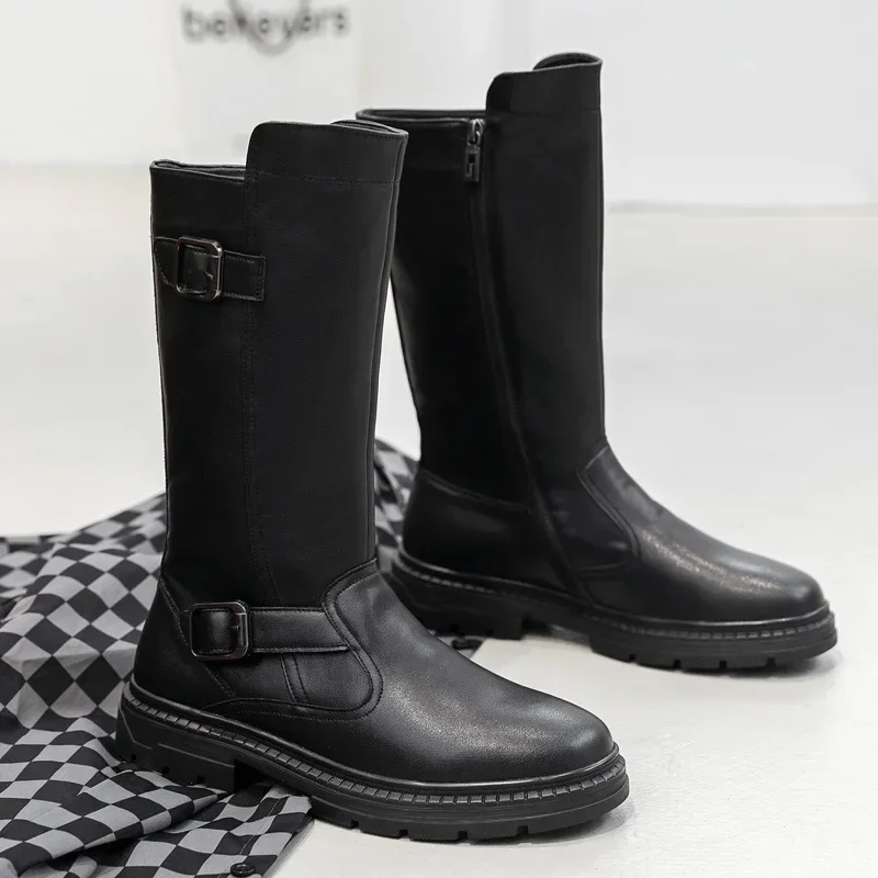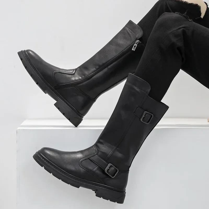 Winter Men's Boots Mid Calf Basic Motorcycle New Fashion Military Parade Boots Knight Thick Soled Long Boots Men's Shoes Black