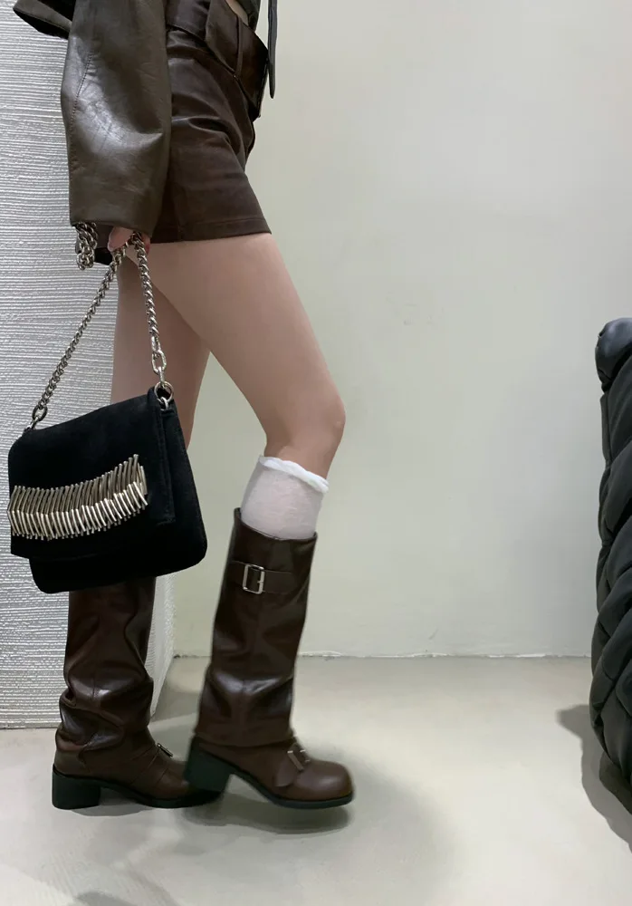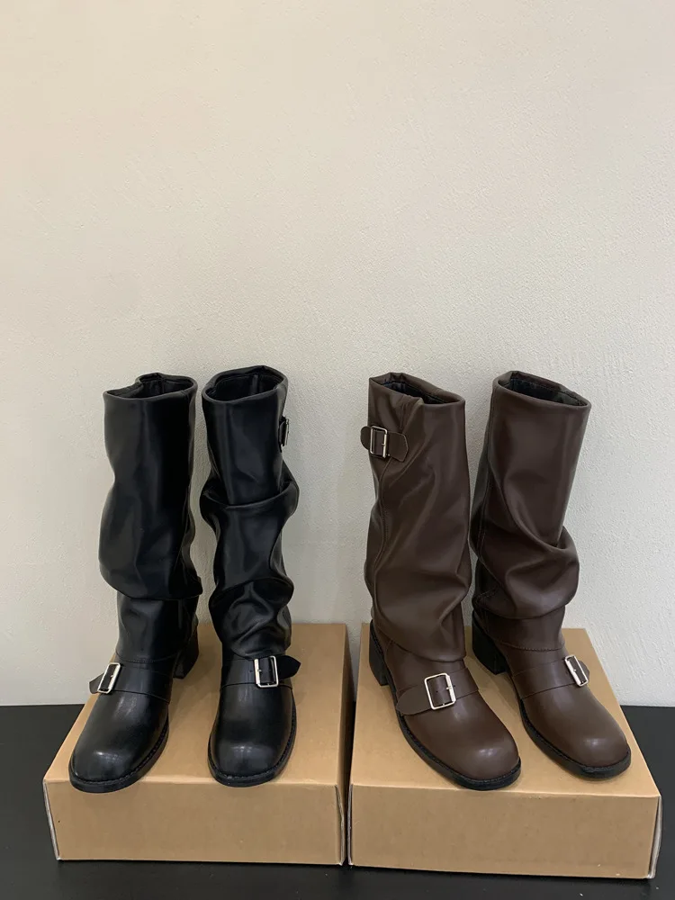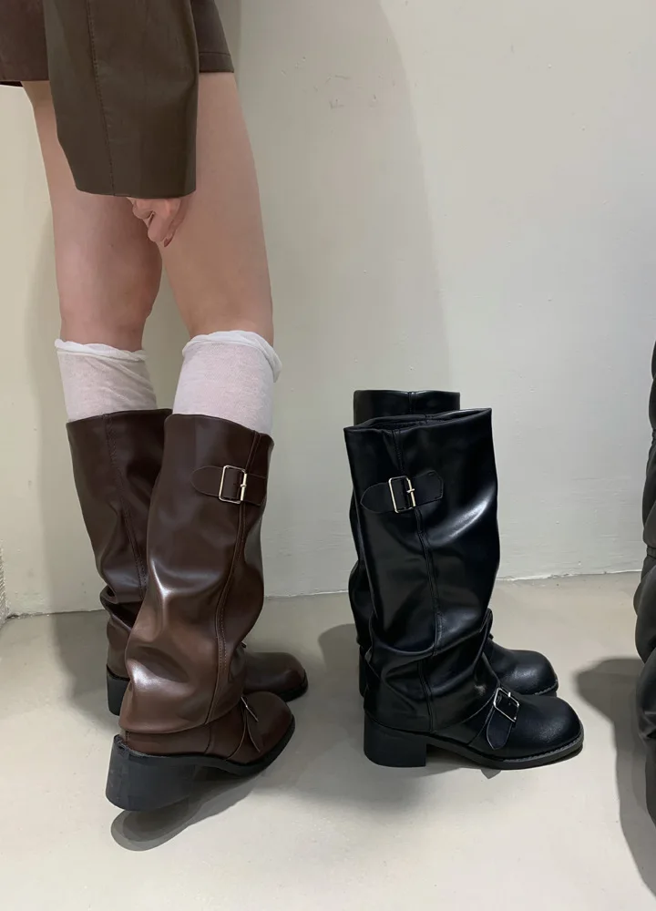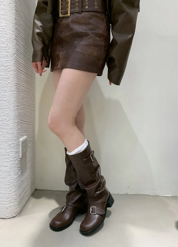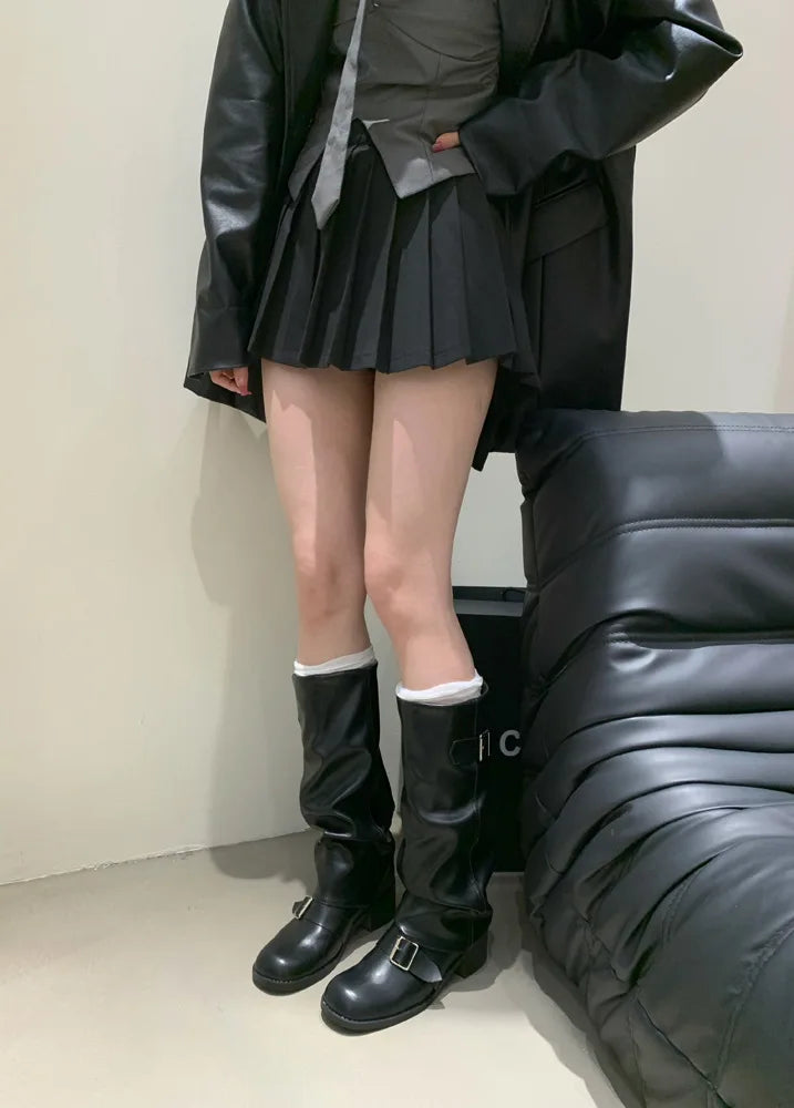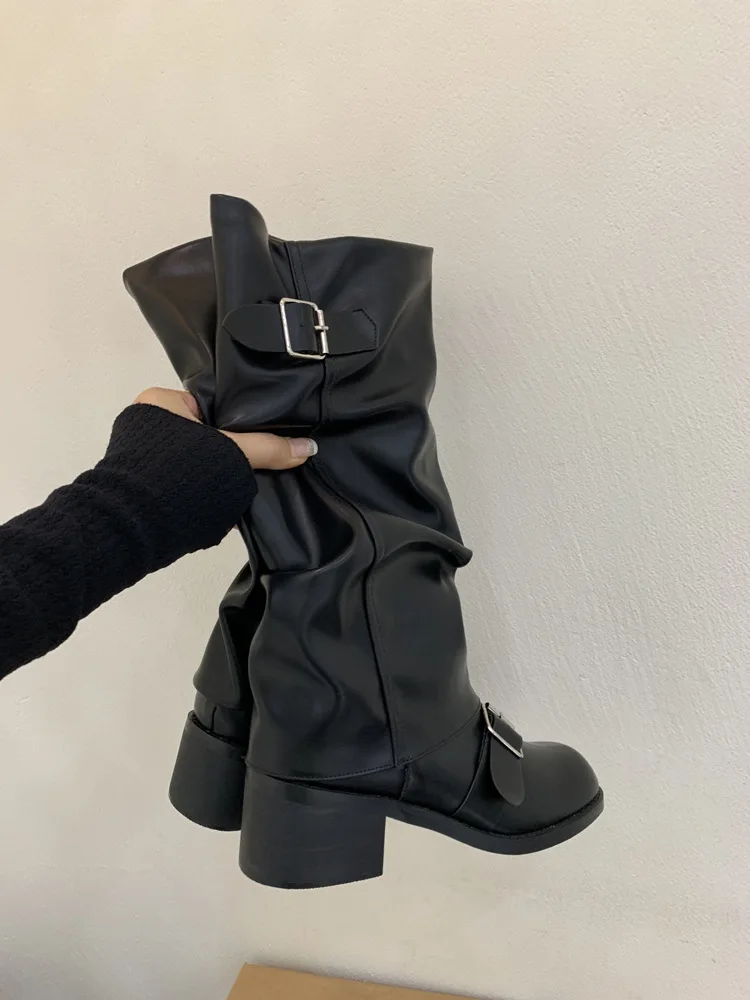 Woman Boots Knee High Platform Heels Trend Punk Gothic New Rock Leather Fashion Women Shoes Motorcycle Footwear Zapatos De Mujer