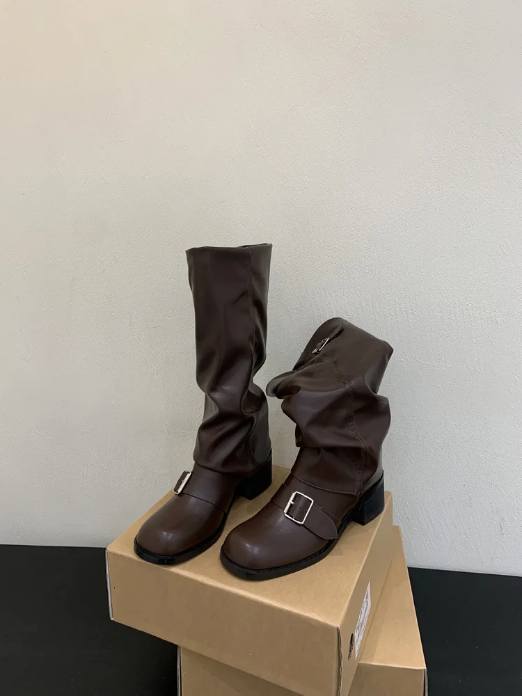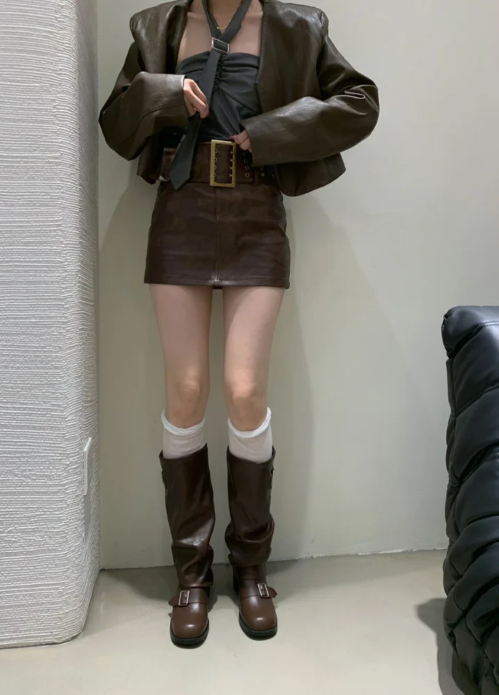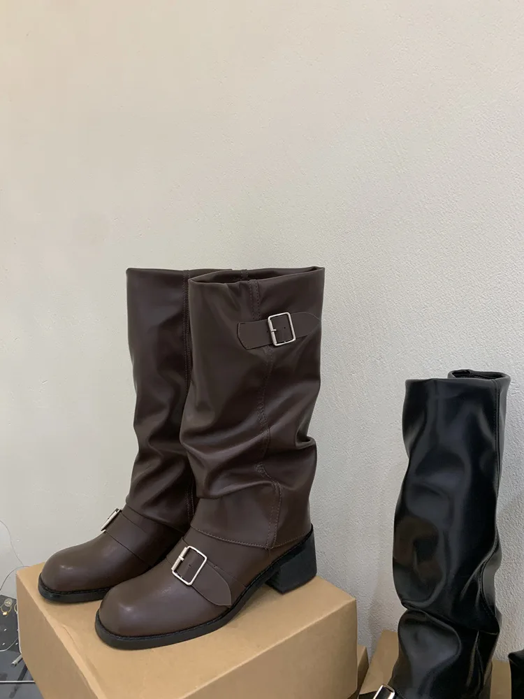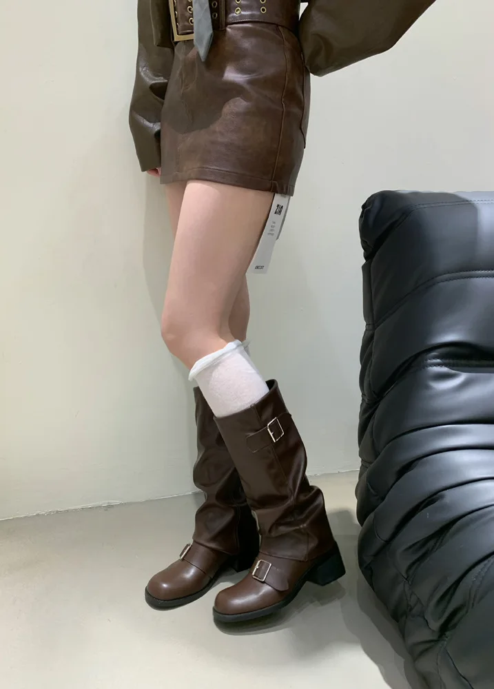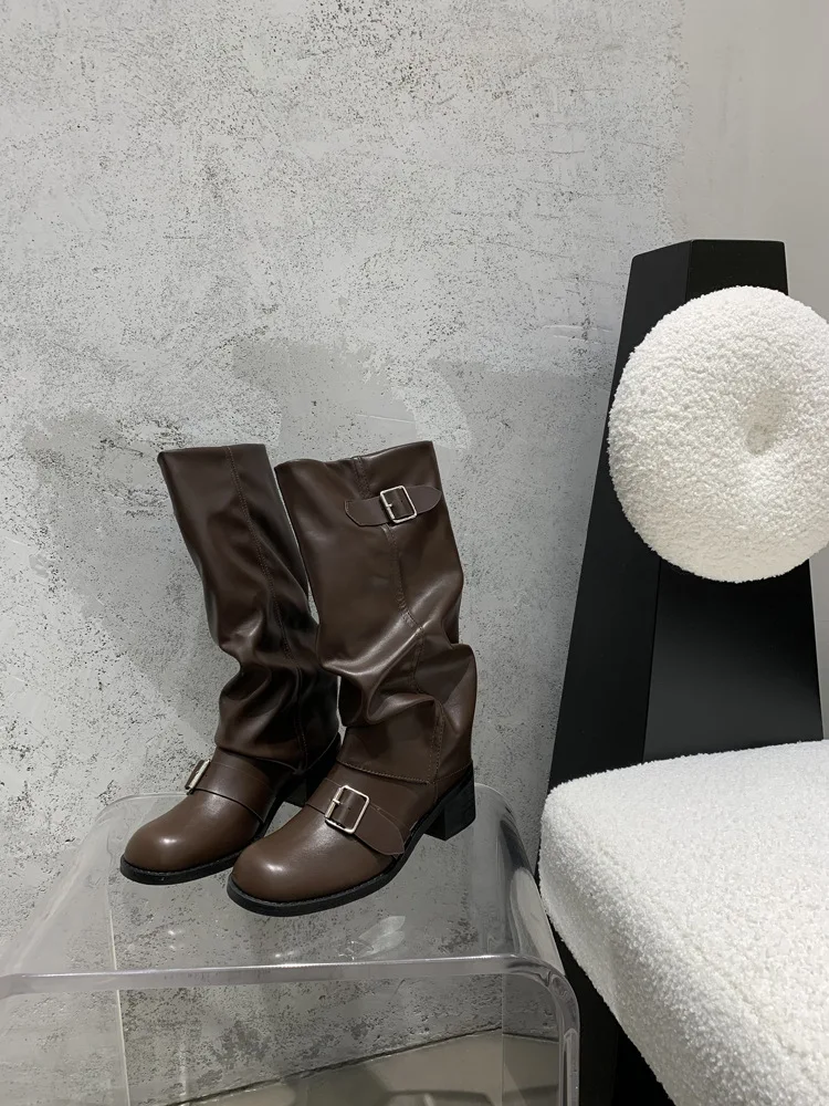 Woman Boots Knee High Platform Heels Trend Punk Gothic New Rock Leather Fashion Women Shoes Motorcycle Footwear Zapatos De Mujer