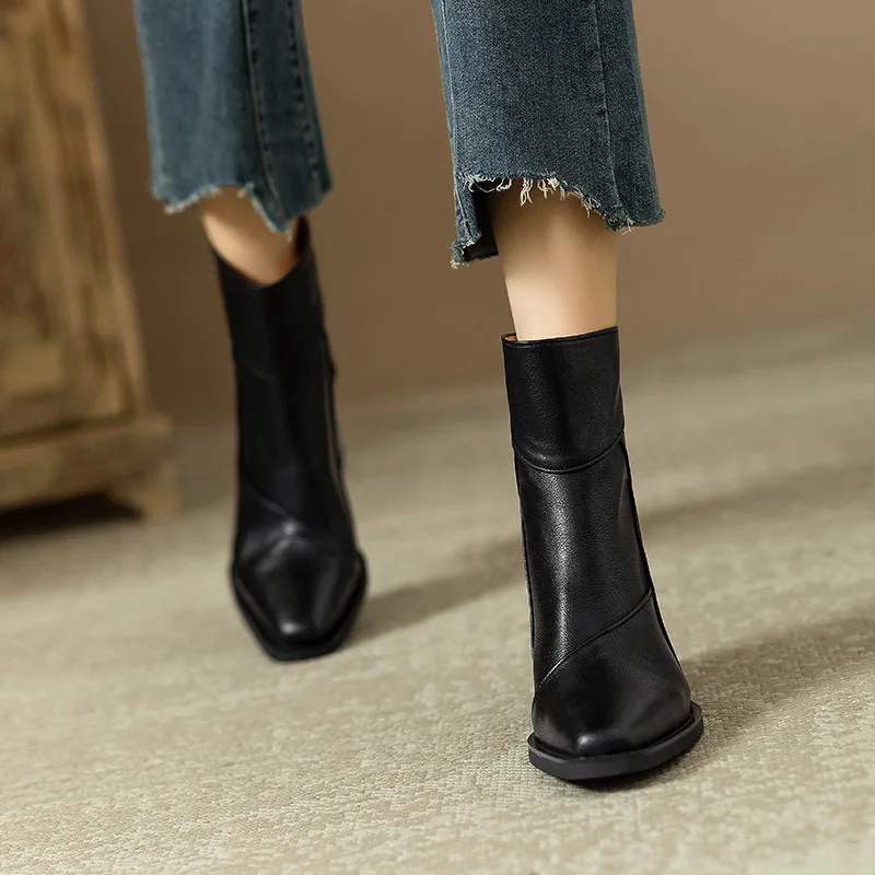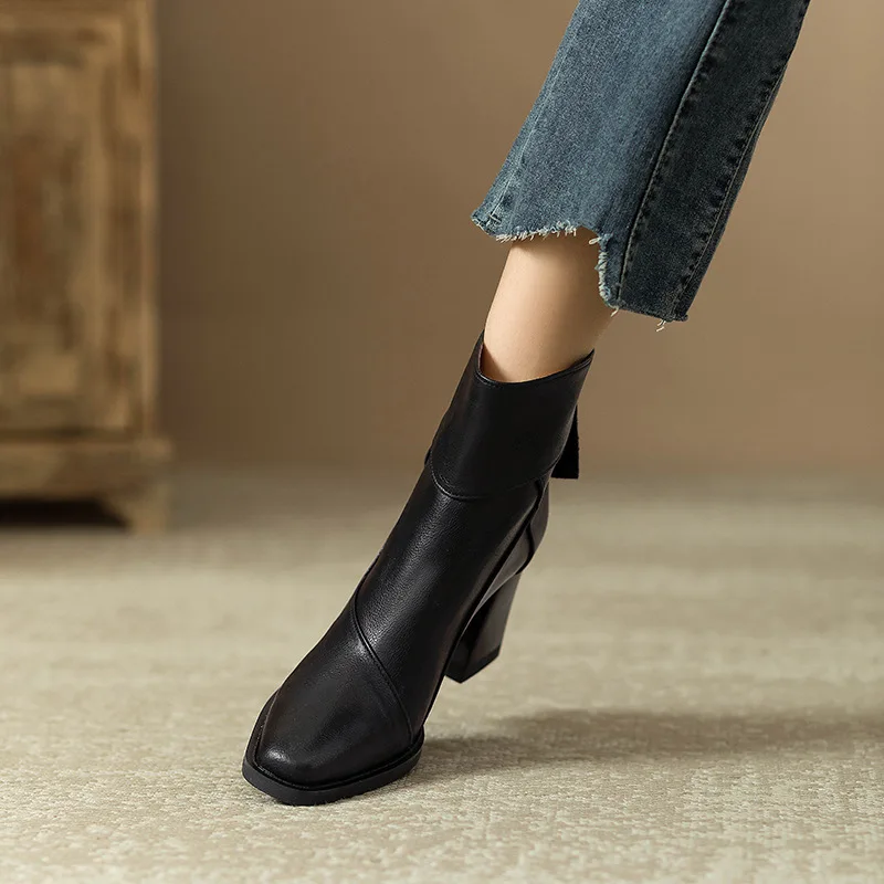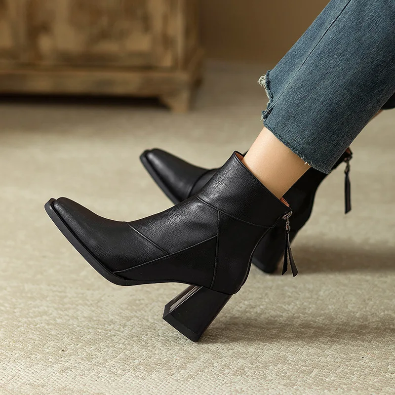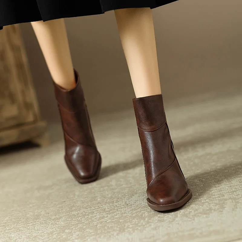 Woman Chunky Ankle Boots Women Zipper Retro Brown Soft Leather Short Boot Autumn New Square Toe Casual High Heel Booties Mujer