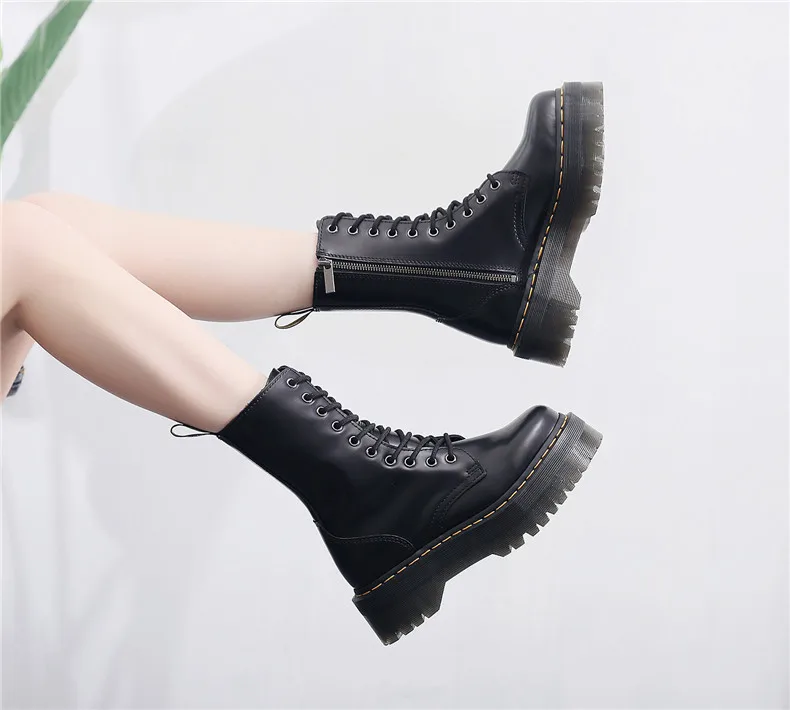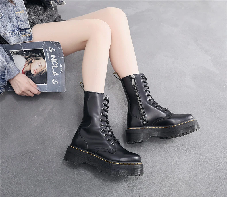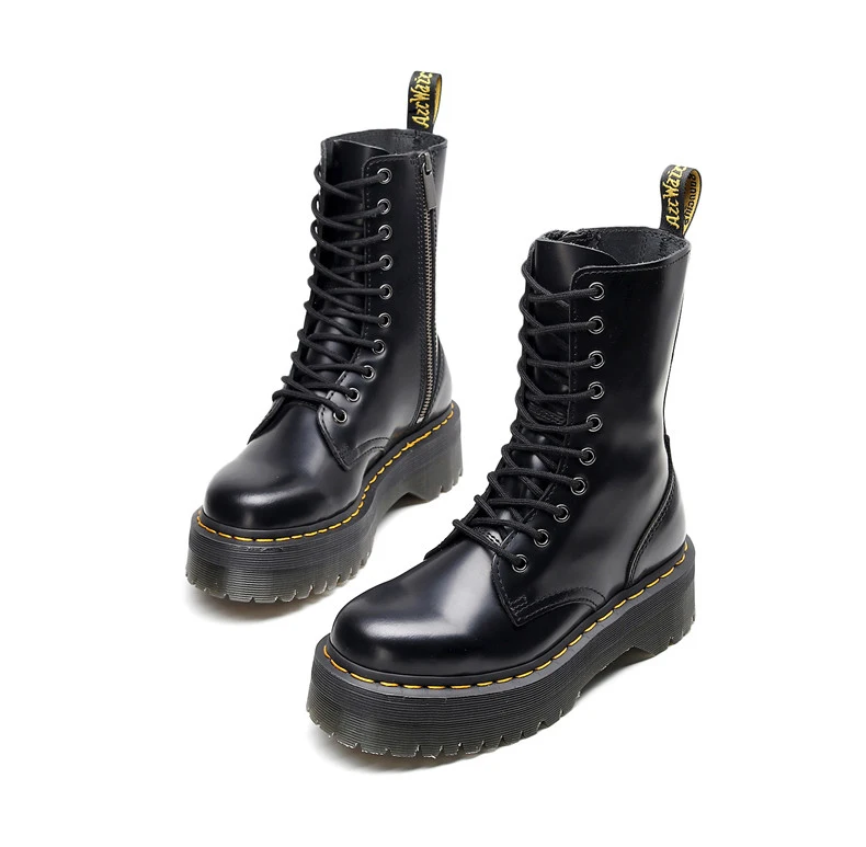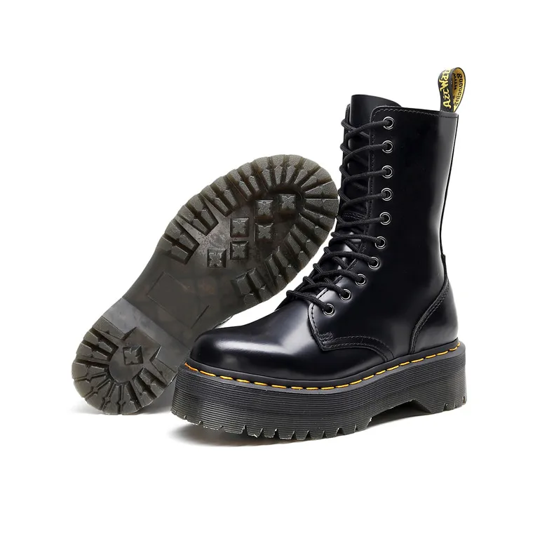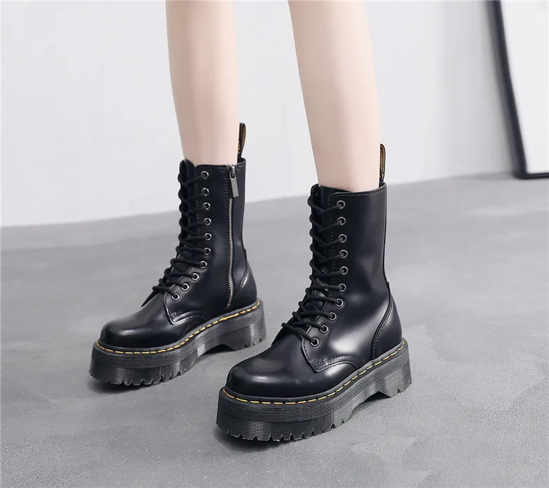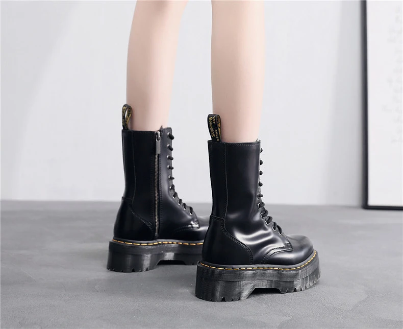 Women Boots Genuine Leather Platform Boots Motorcycle Designer Shoes Woman Zipper Optical Soles Fashion Sexy Punk Long Boots 39