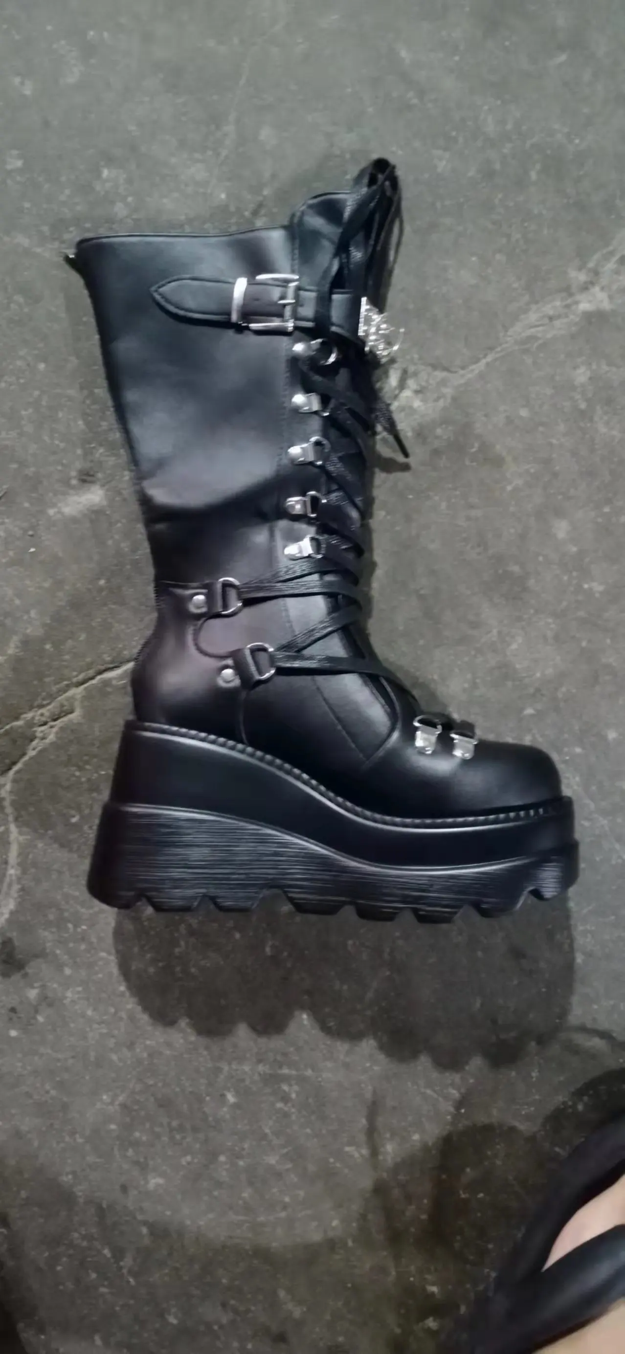 Women High Boots Cosplay Mid-calf Boots High Platform Wedges Boots 2025 Autumn Winter New Designer Gothic Shoes for Women Botas