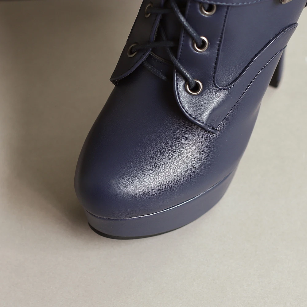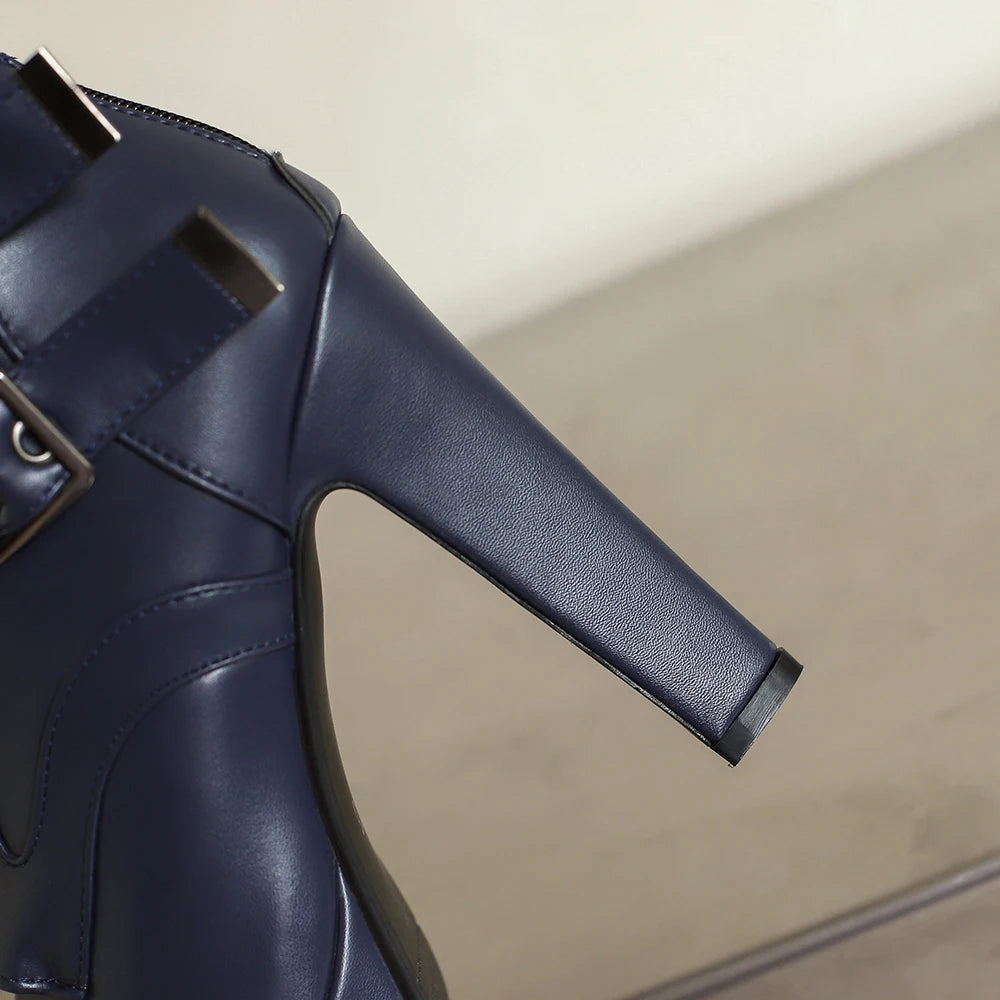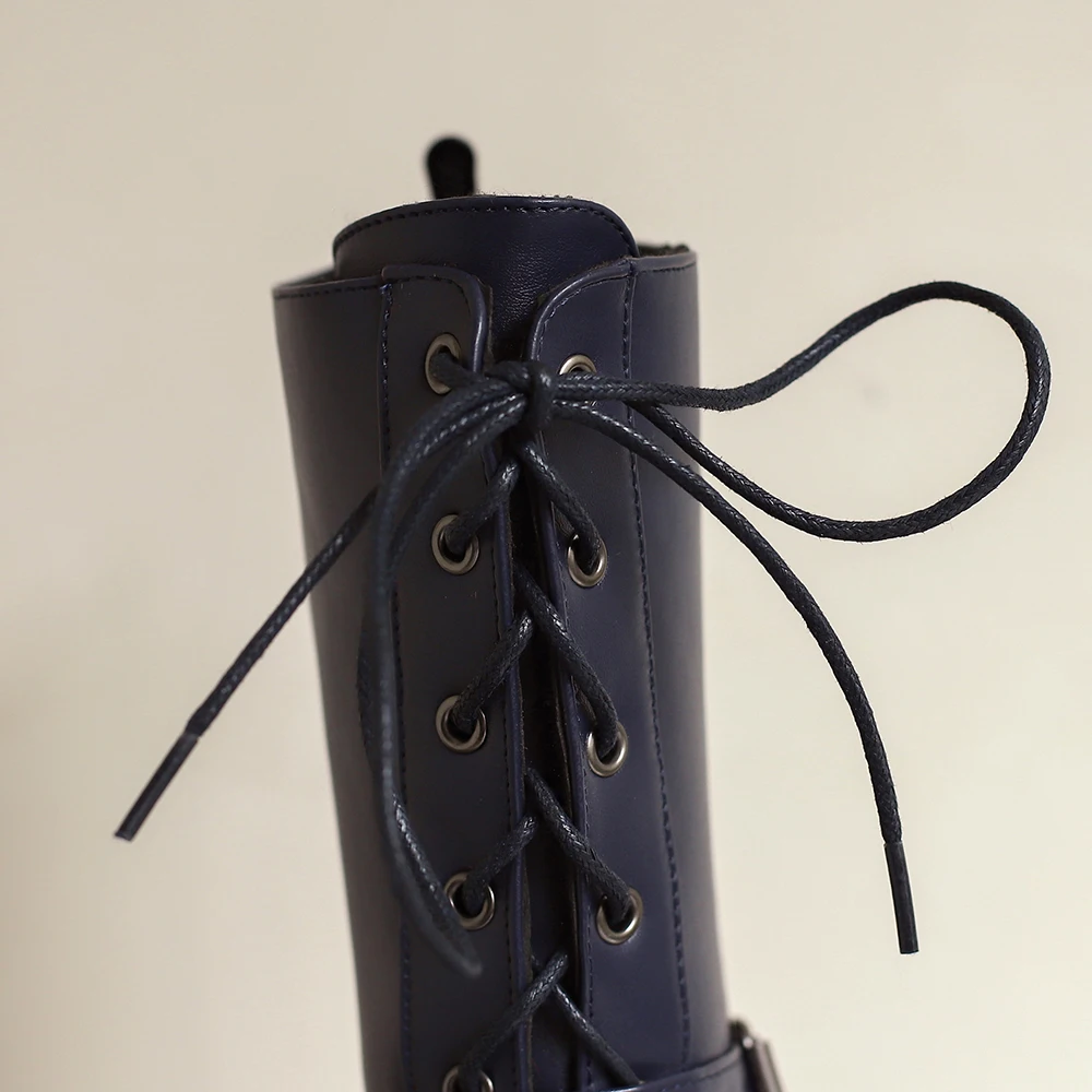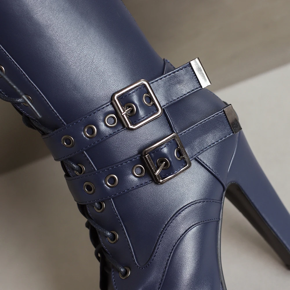Embrace edgy fashion with these Women Punk Style Lace-Up Ankle Boots, featuring a unique belt buckle and platform high heels.