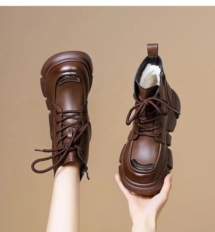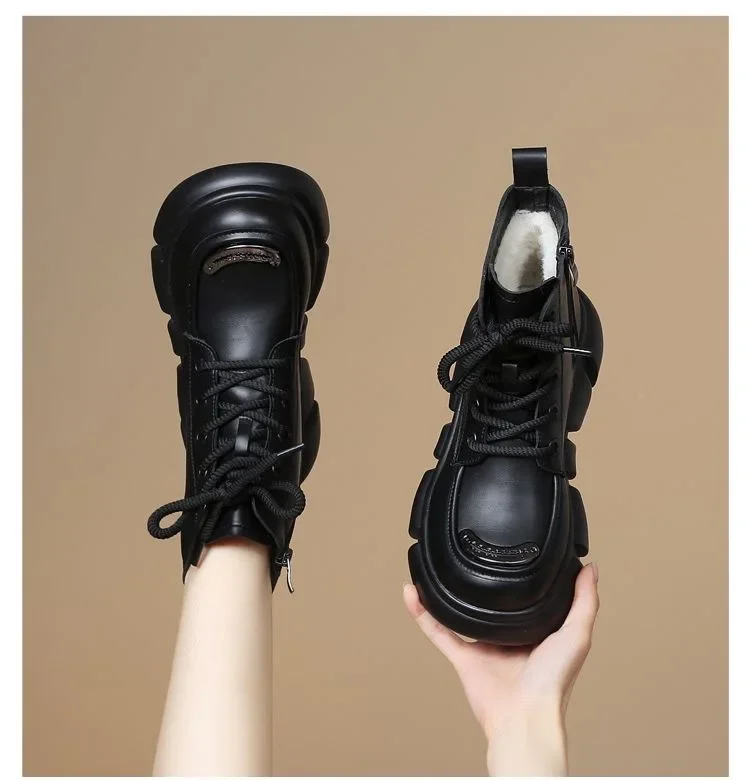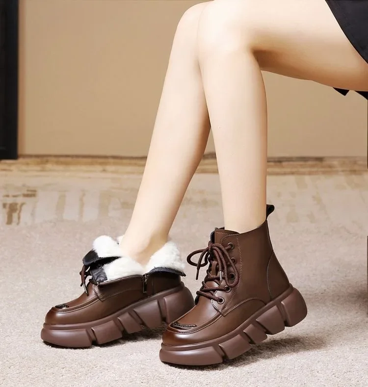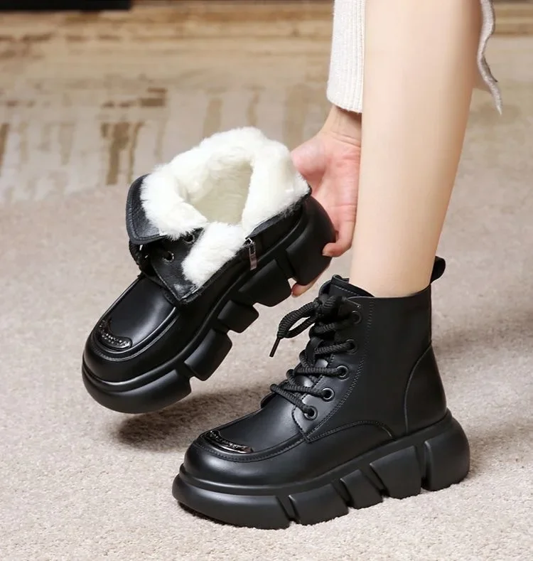 Women's Boots Winter New Fur Snow Boots Platform Plush Comfortable Anti Slip Warm Lace Up Cold Proof Cotton Ankle Boots