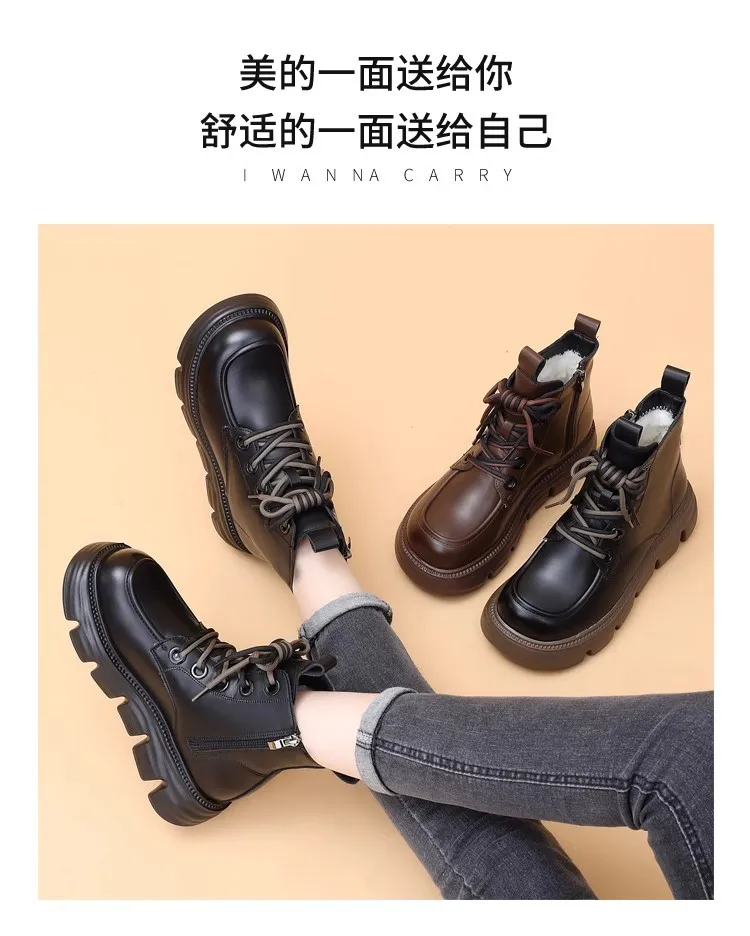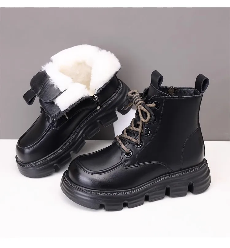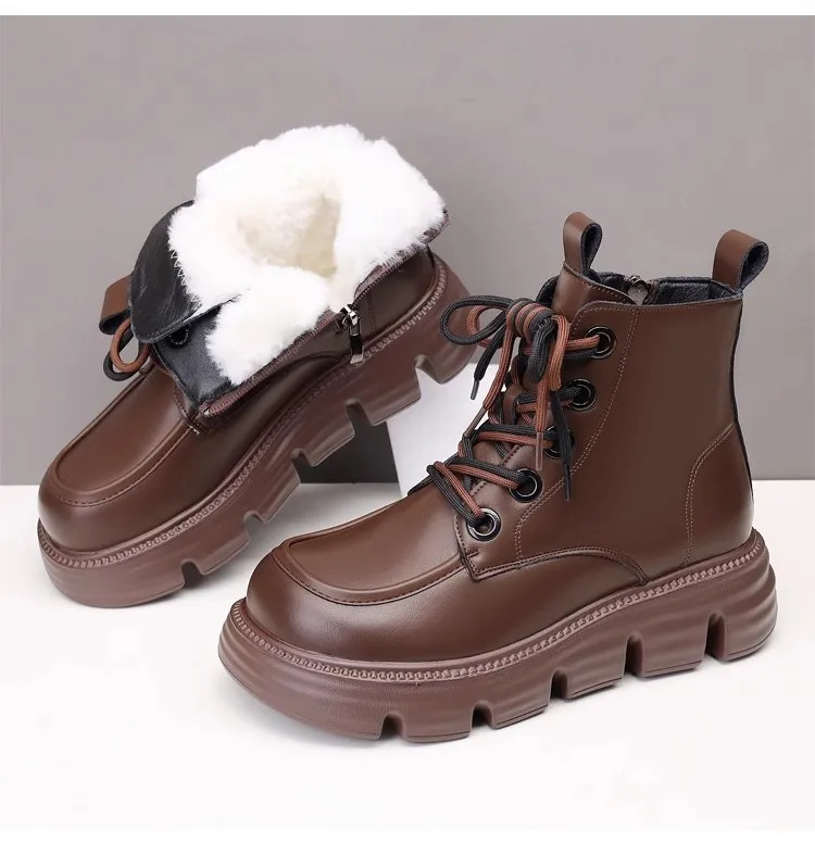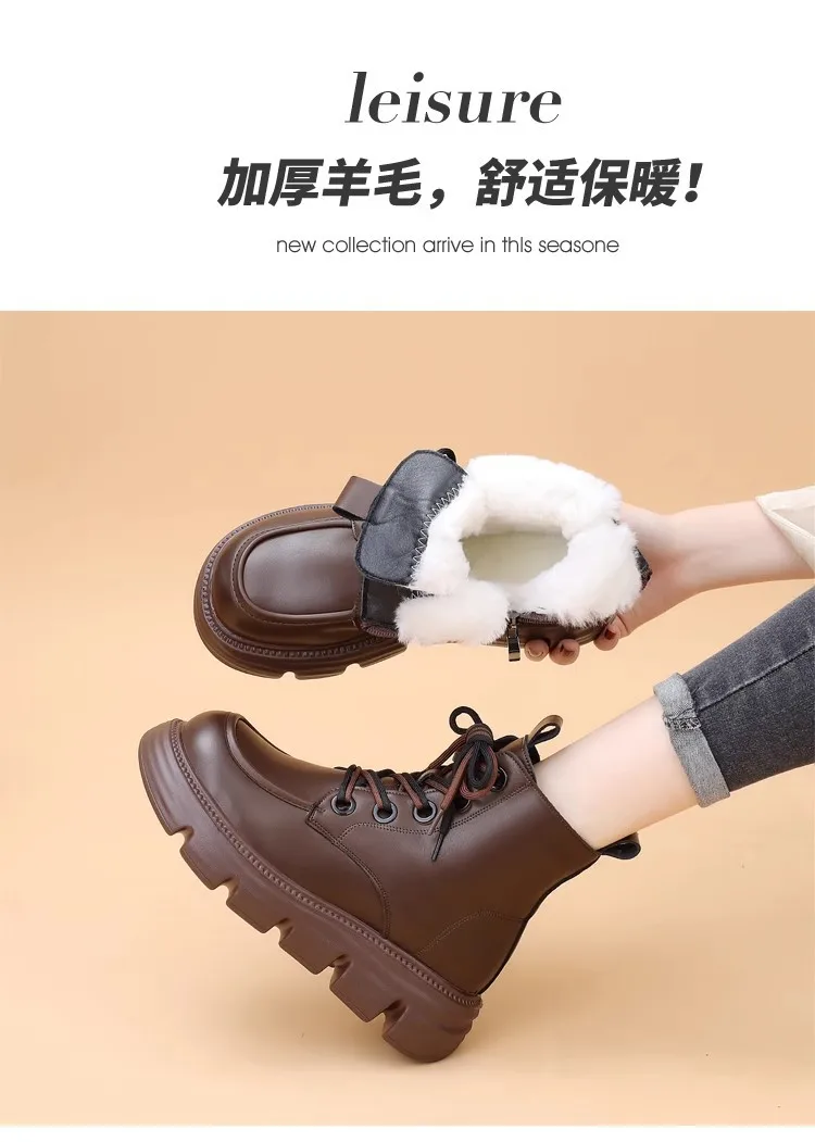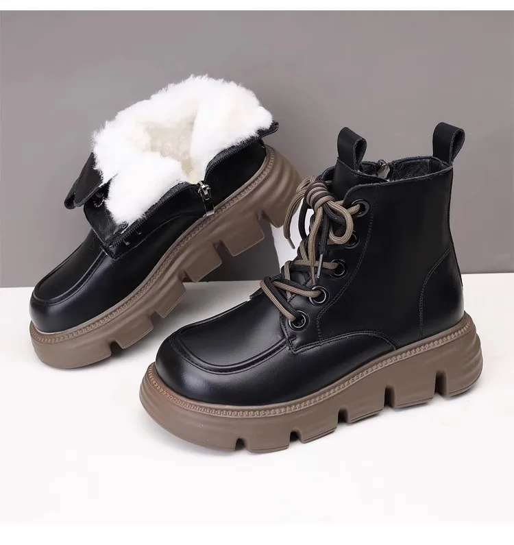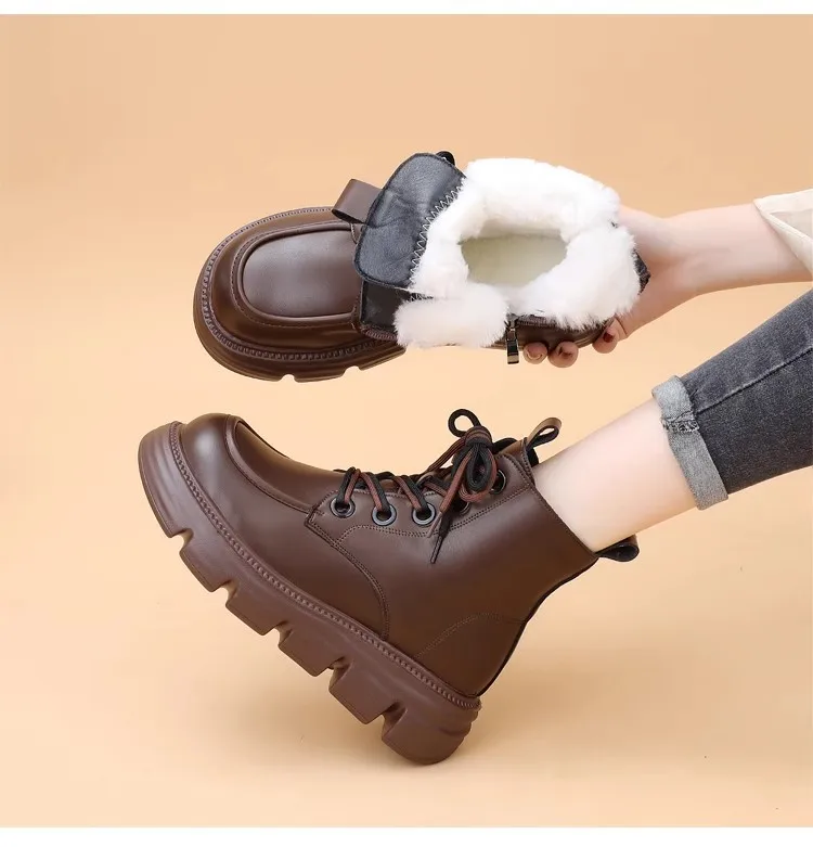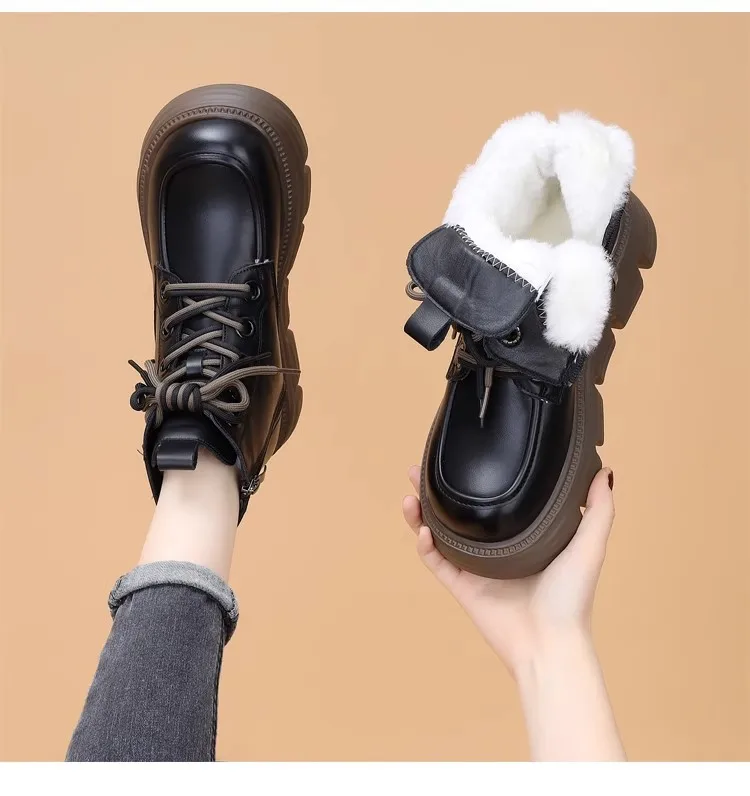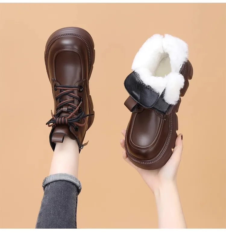 Women's Boots Winter New Fur Snow Boots Platform Plush Comfortable Anti Slip Warm Lace Up Cold Proof Cotton Ankle Boots Women
