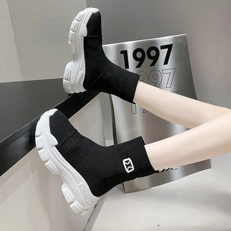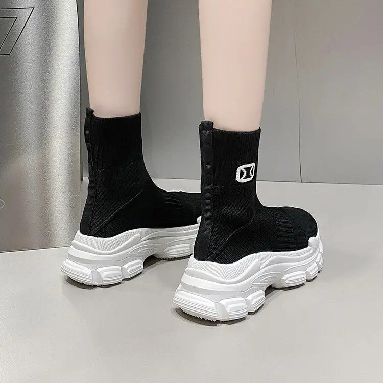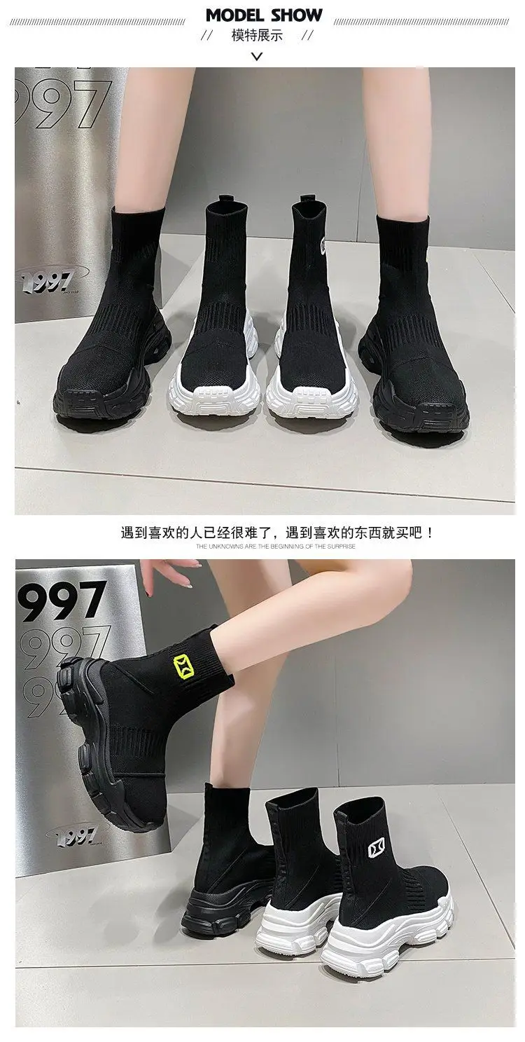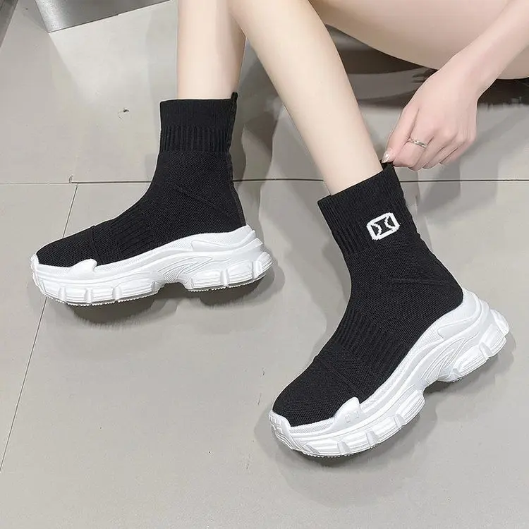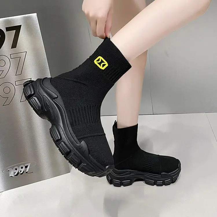 Women's Breathable 2025 Summer Autumn New Style Internet Hot Super Hot Knitted High-Top Casual Athletic Stretch Socks Boots