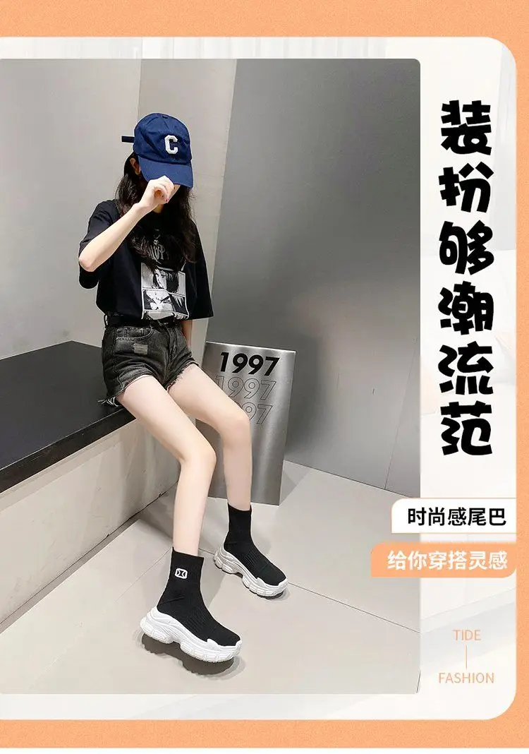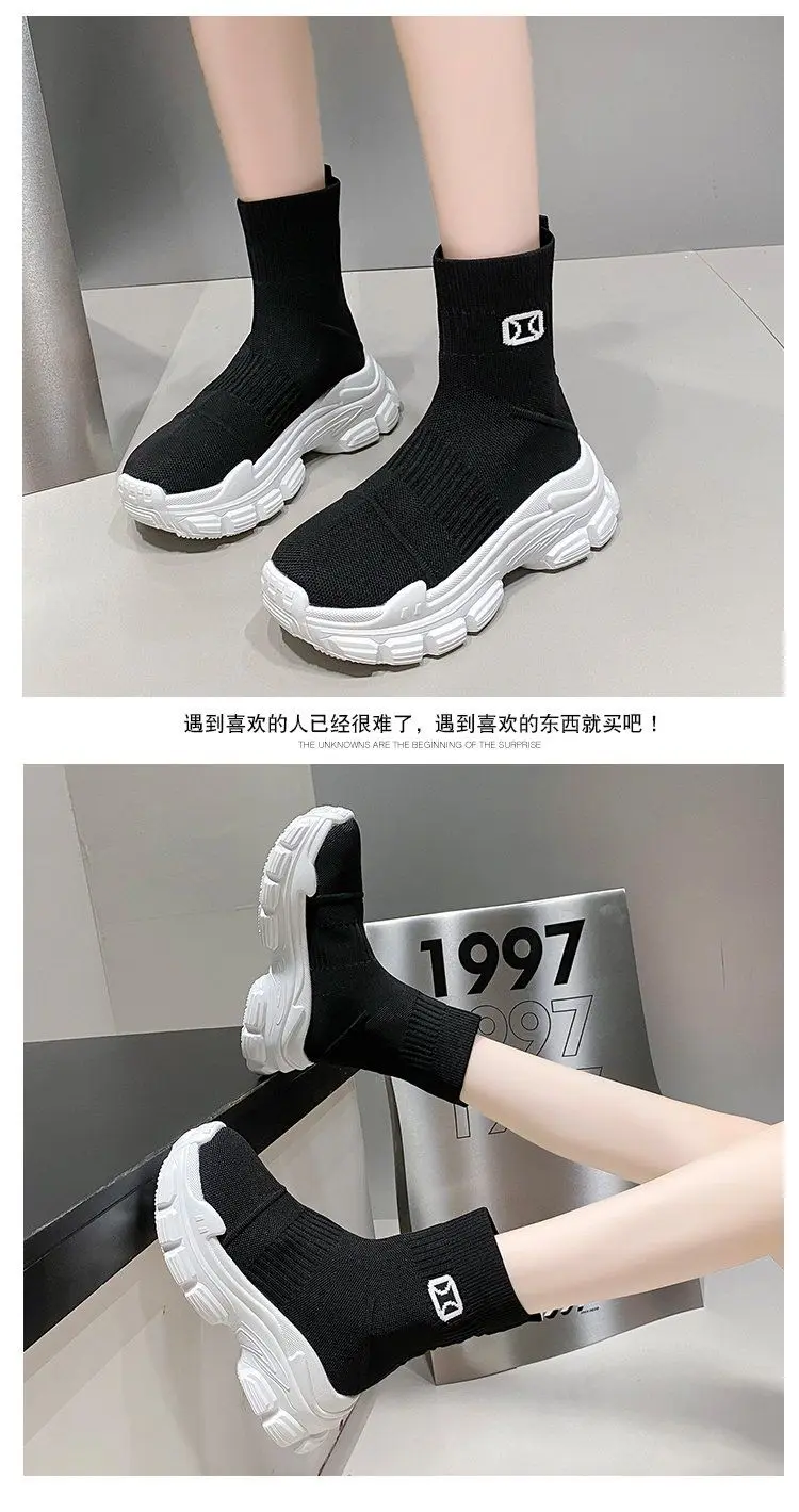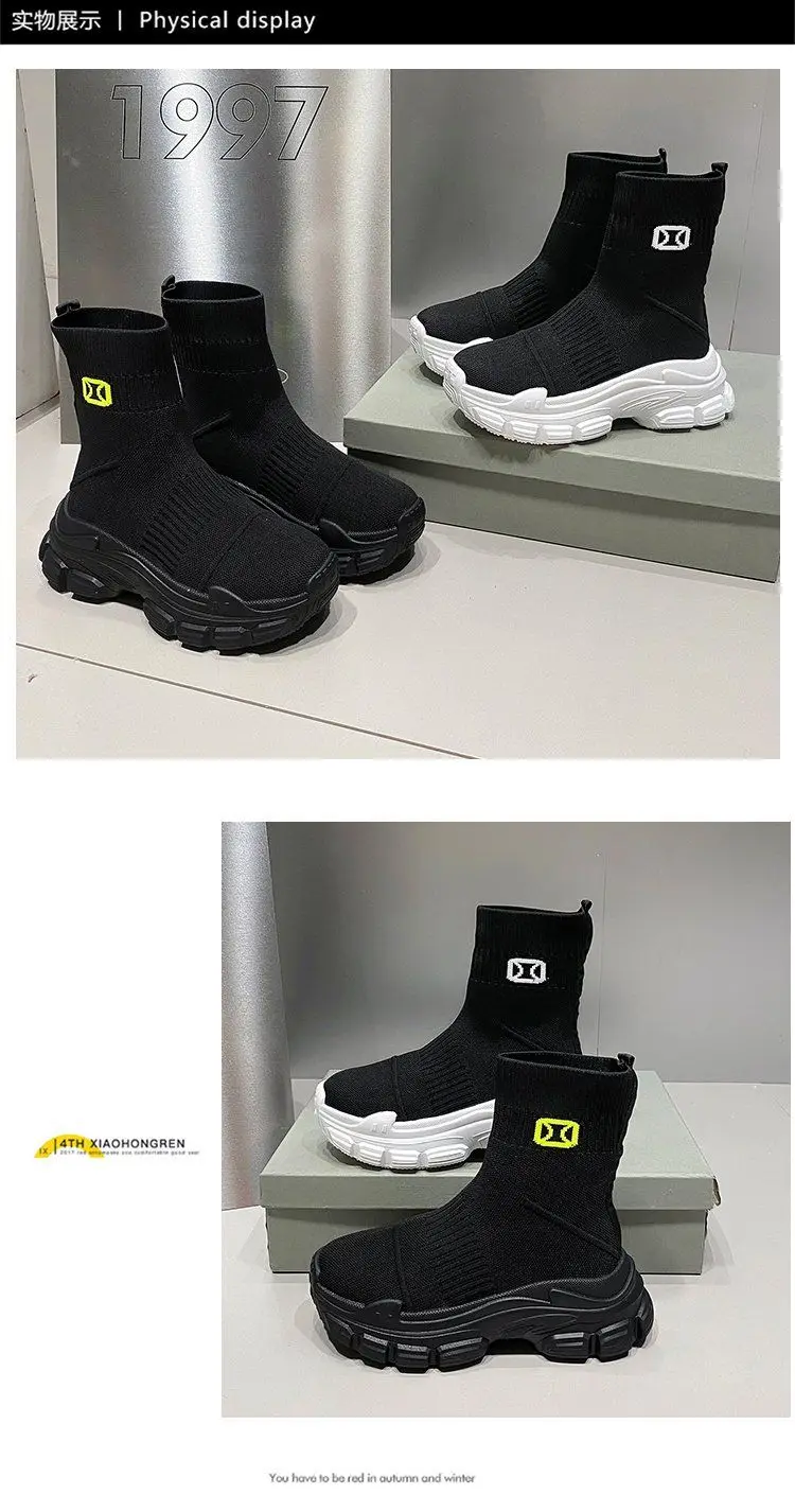 Women's Breathable 2025 Summer Autumn New Style Internet Hot Super Hot Knitted High-Top Casual Athletic Stretch Socks Boots