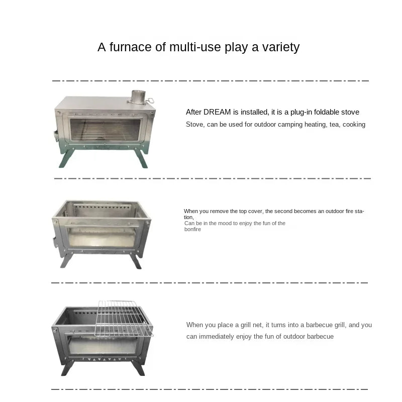 WT-Dream-Ti Titanium furnace Plug-in folding titanium alloy outdoor tent camping wood stove grill