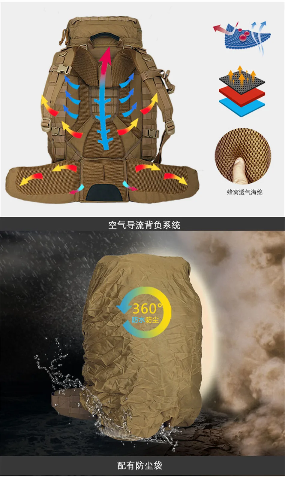 YAKEDA 90L Heavy Large Capacity Mountaineering Bag Waterproof Dustproof Breathable Adventure Outdoor Travel Tactical Backpack