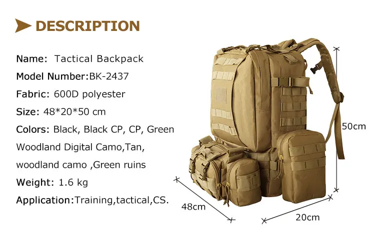 YAKEDA Tactical Backpack Outdoor Mountaineering Tactical Bag Sports Men and Women Large Capacity Wear-resistant Picnic Camping