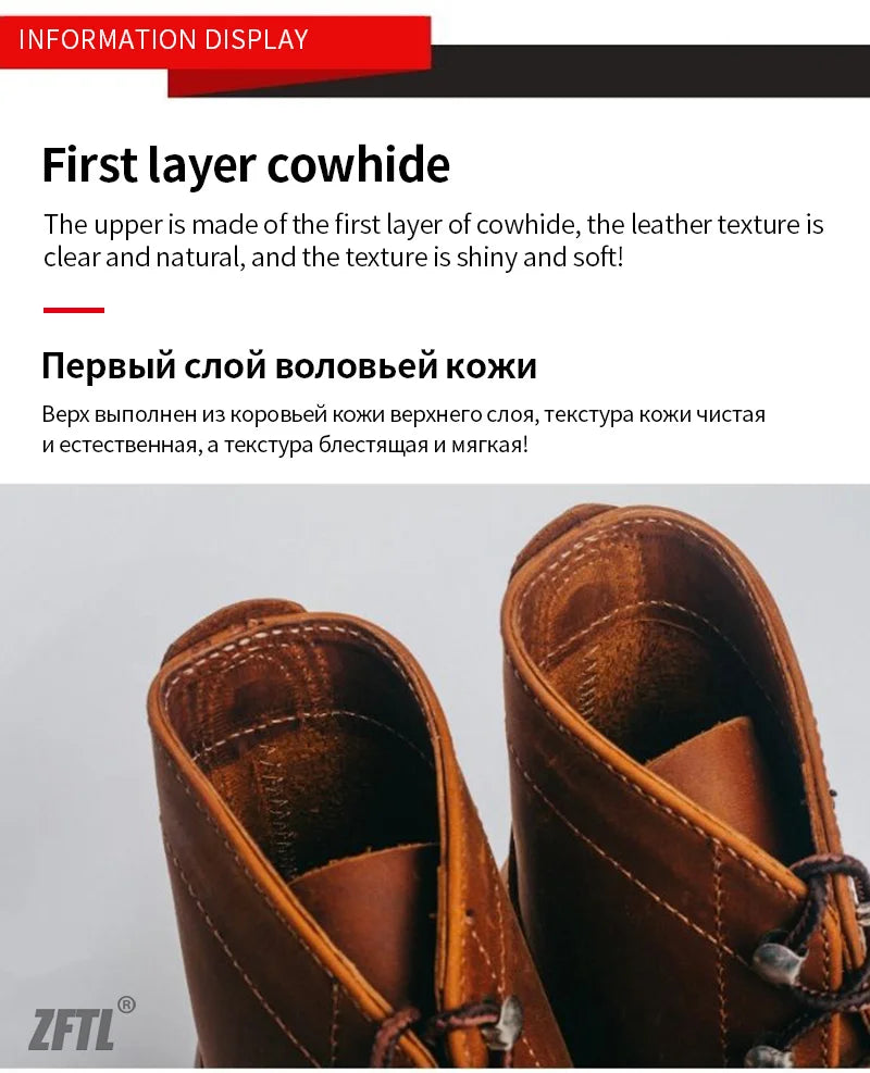 ZFTL Men's Motorcycle Boots Cowhide American Vintage Genuine Leather Desert Boots Male Lace up Boots Couple boots 2025